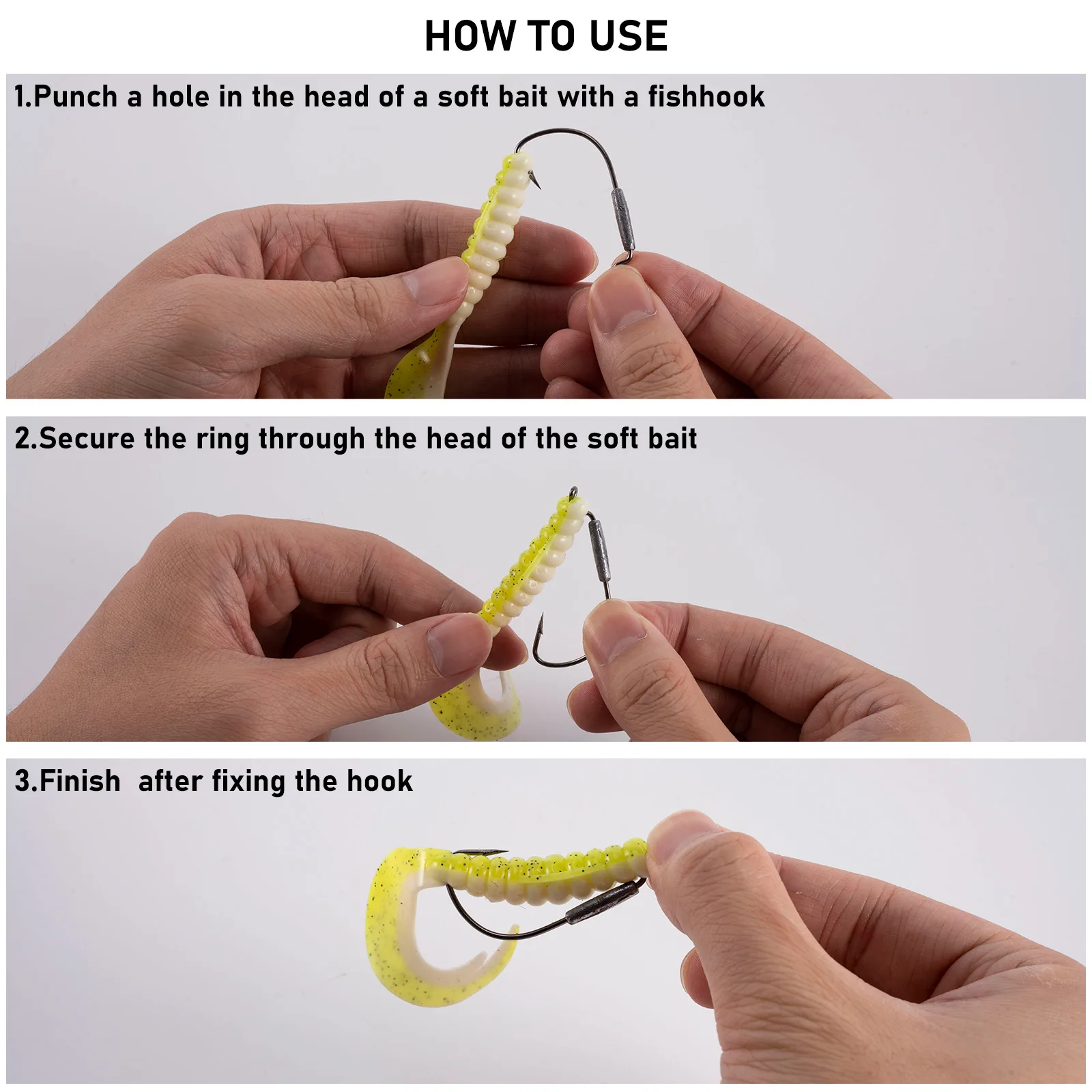 Ganchos ponderados: el vástago ponderado con precisión permite que el cebo se lance más lejos con más precisión, y hunde su cebo directamente en la zona de ataque para picaduras más agresivas.