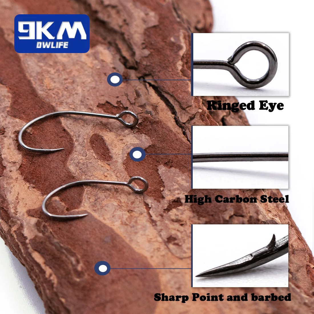 The fishing hooks are really sharp with special barbed design,for less mortality rate.offset point, sharp hook point and barb easier to pierce the fish's mouth, reduce the escape rate and death rate of fish.