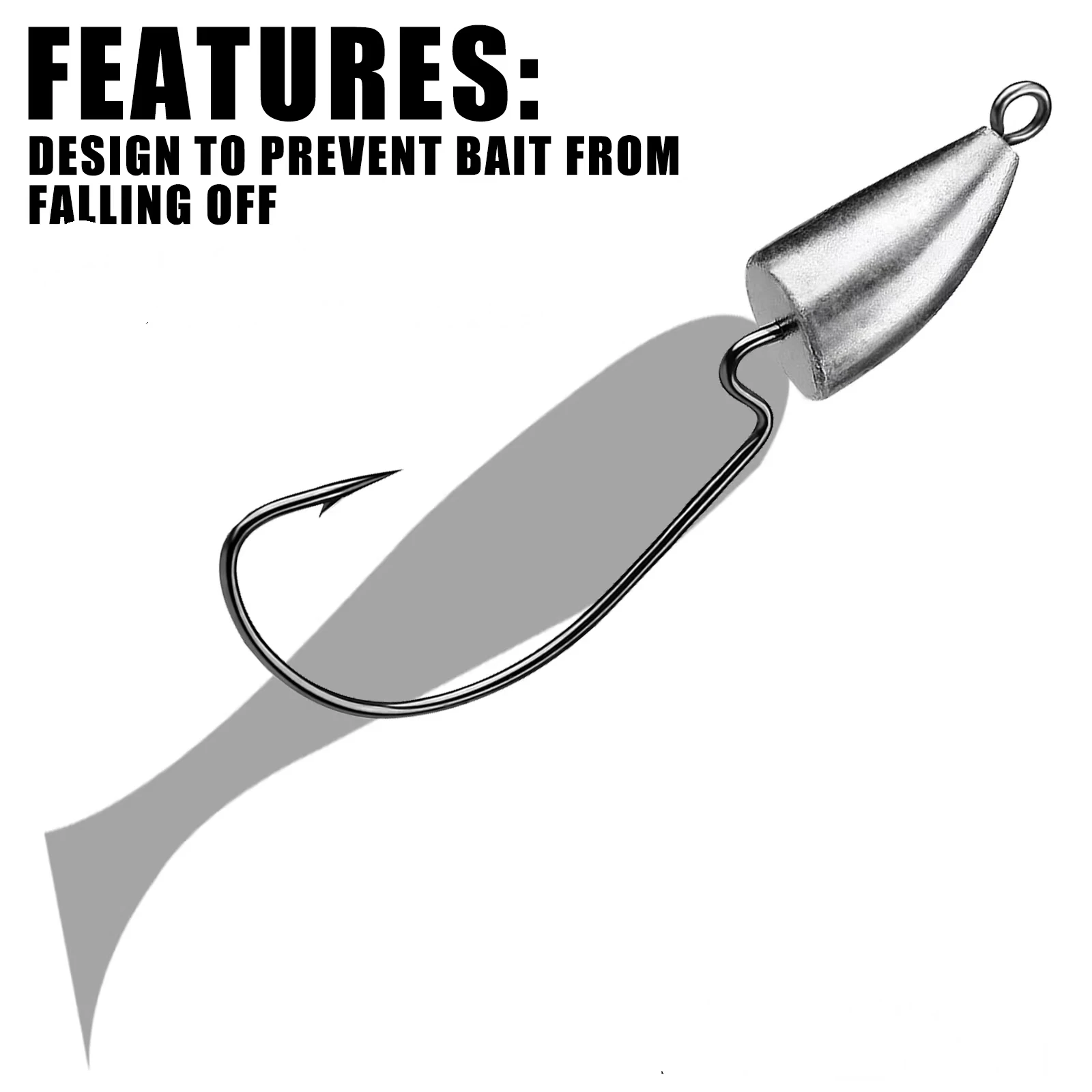 La punta del gancho de púas afilada mecánicamente garantiza una mejor penetración y aumenta las conexiones. Los colores brillantes le dan una ventaja al pescar en aguas con baja visibilidad.