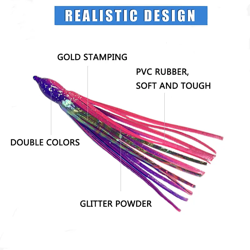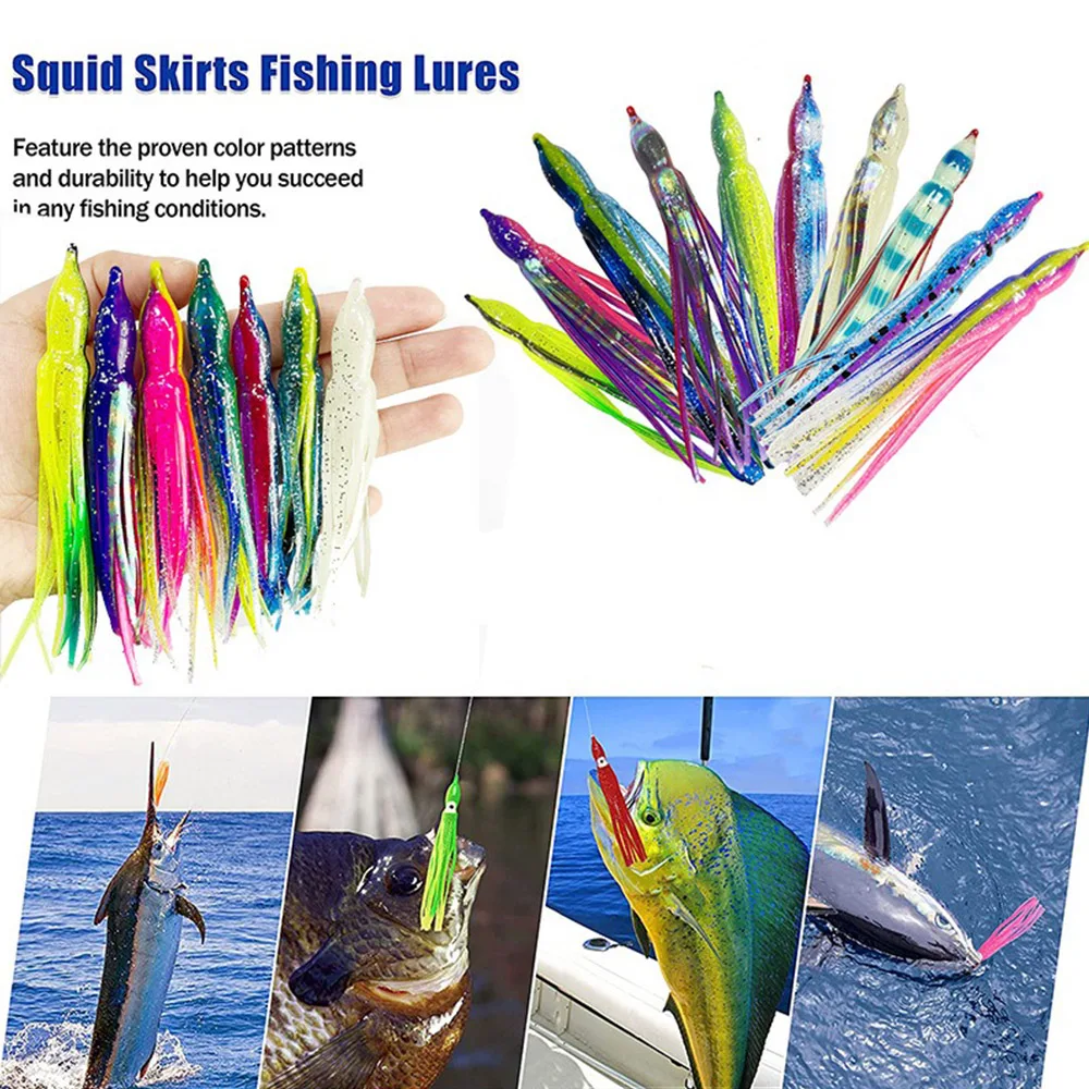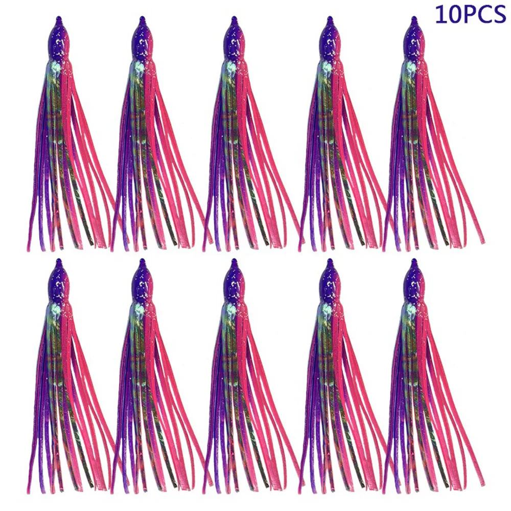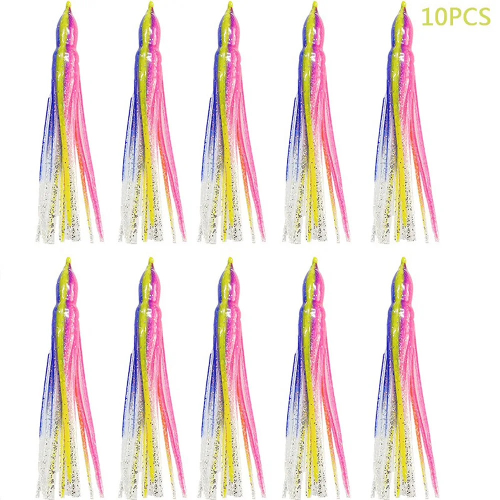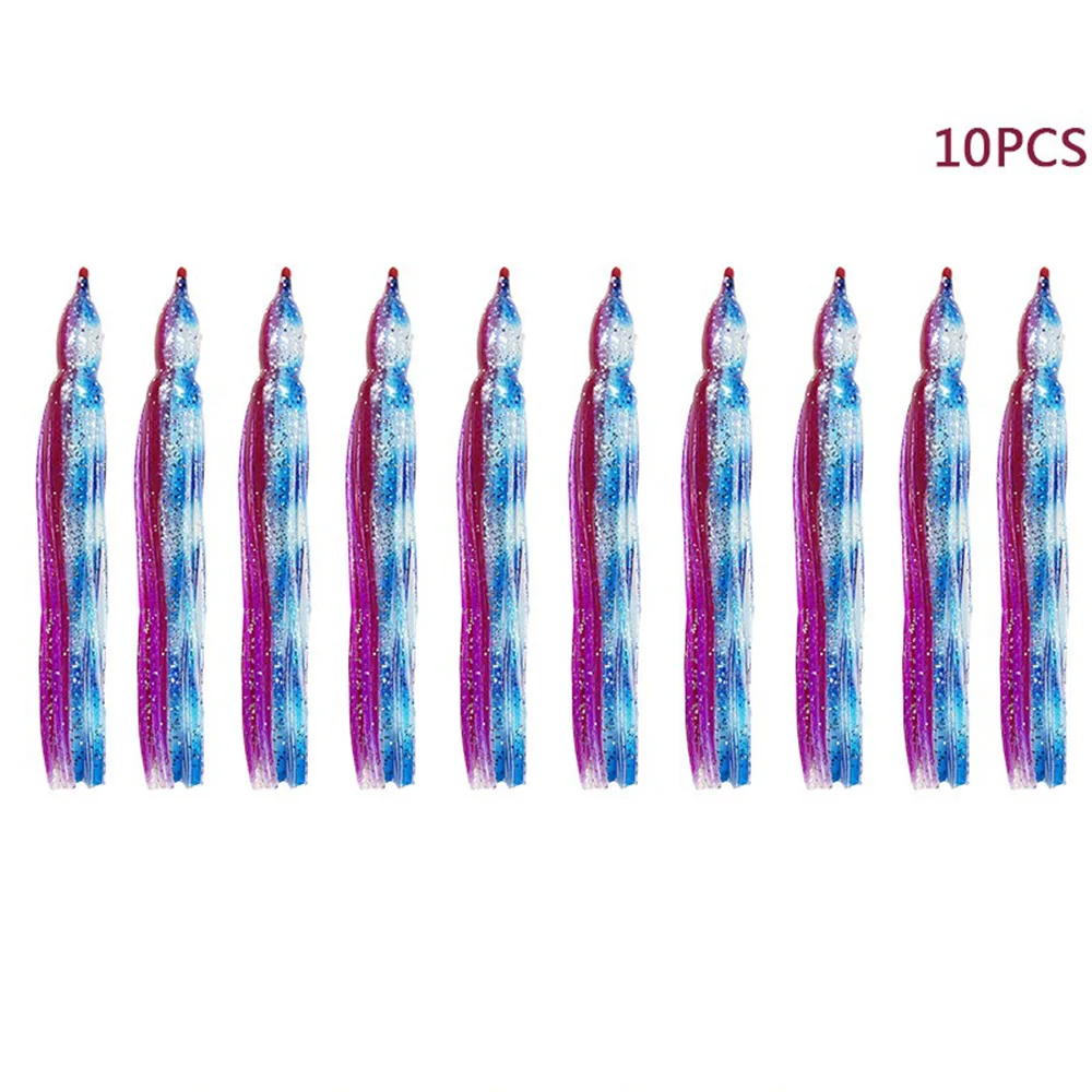 10 faldas de pulpo Hoochie luminosas de repuesto, señuelos de curricán de 12cm, aparejos de pesca, señuelos suaves, faldas de calamar, cebo de agua salada