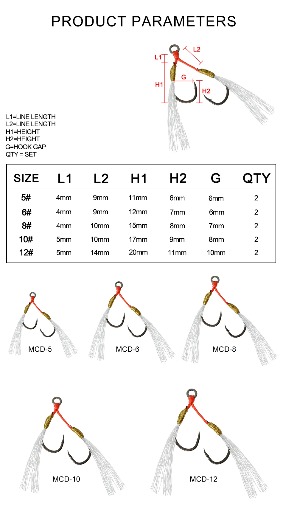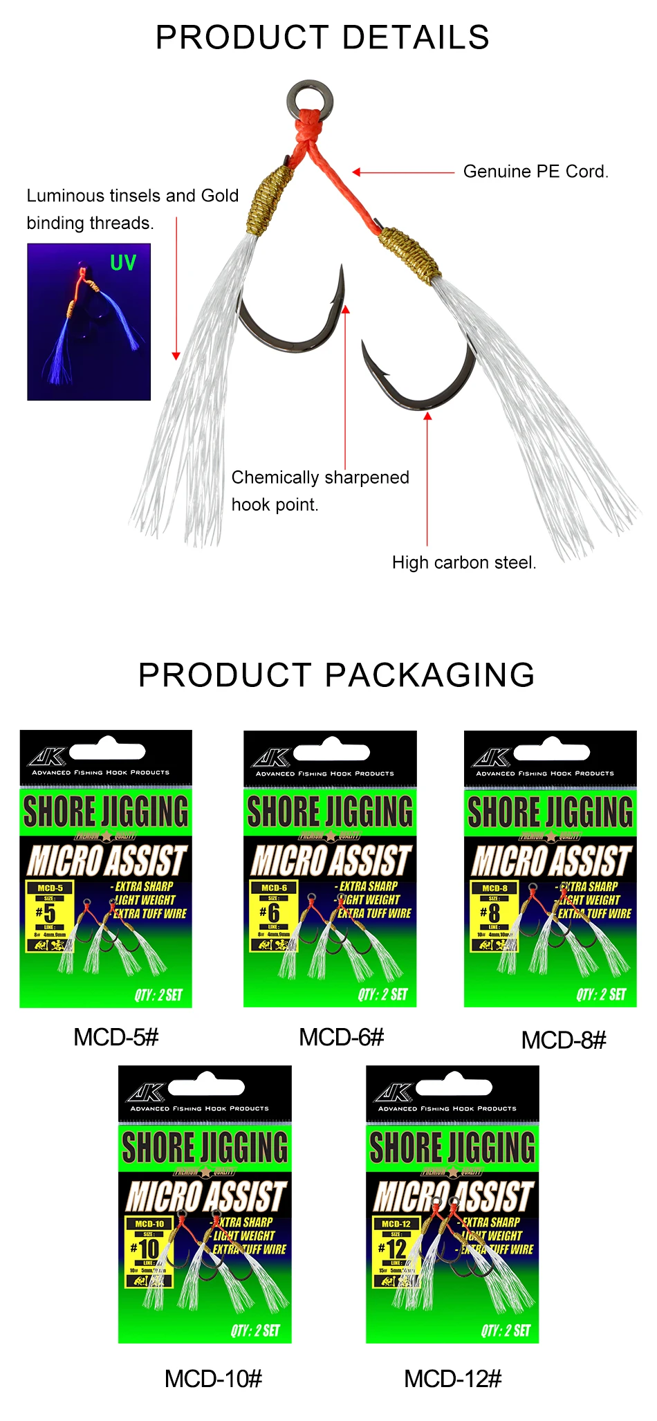 Anzuelo ligero de agua salada JK MCD 5 #6 #8 #10 #12 # anzuelos pequeños de asistencia para jigging Individual Doble