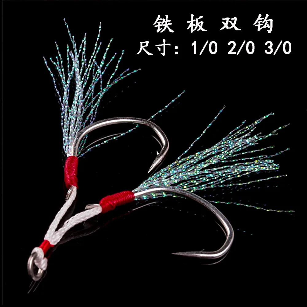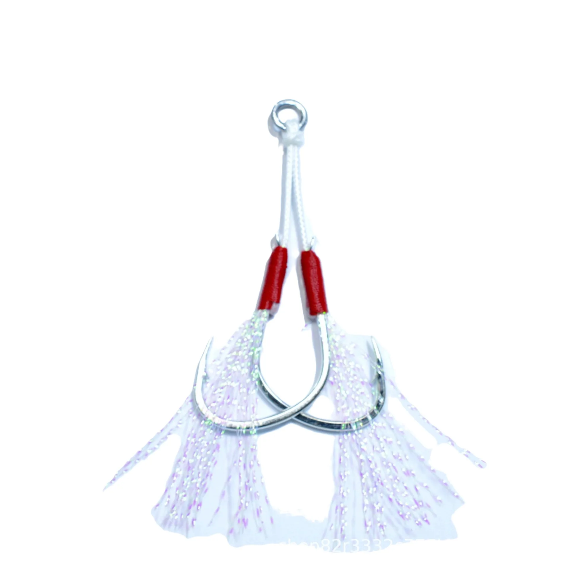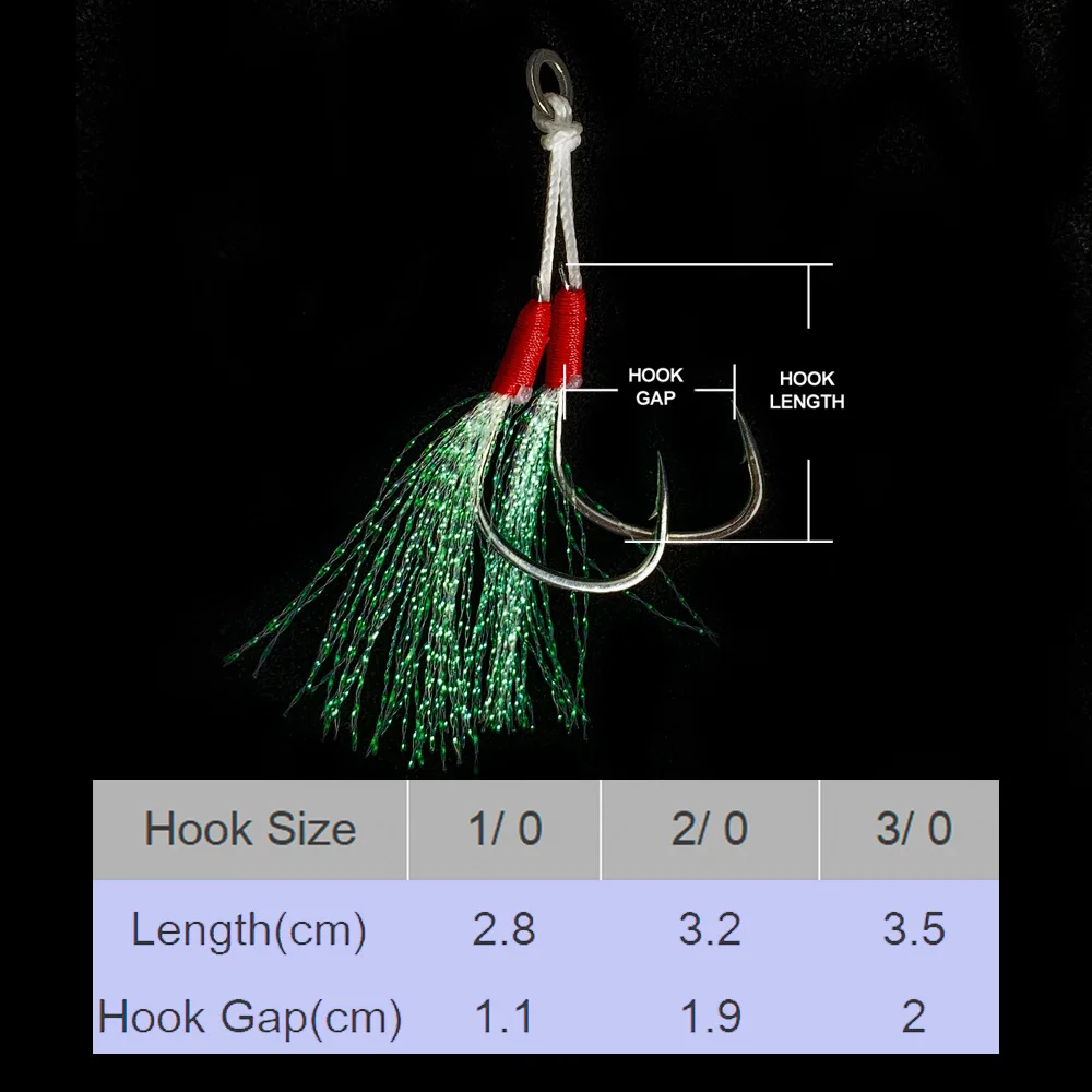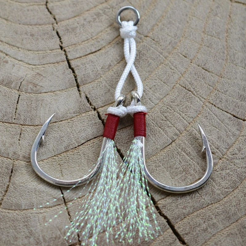 Anzuelos de mariposa para pesca en el océano, gancho de ayuda para Jigging lento, doble luminoso, cordón de gancho teaser y anillo sólido para atún, 2 pares