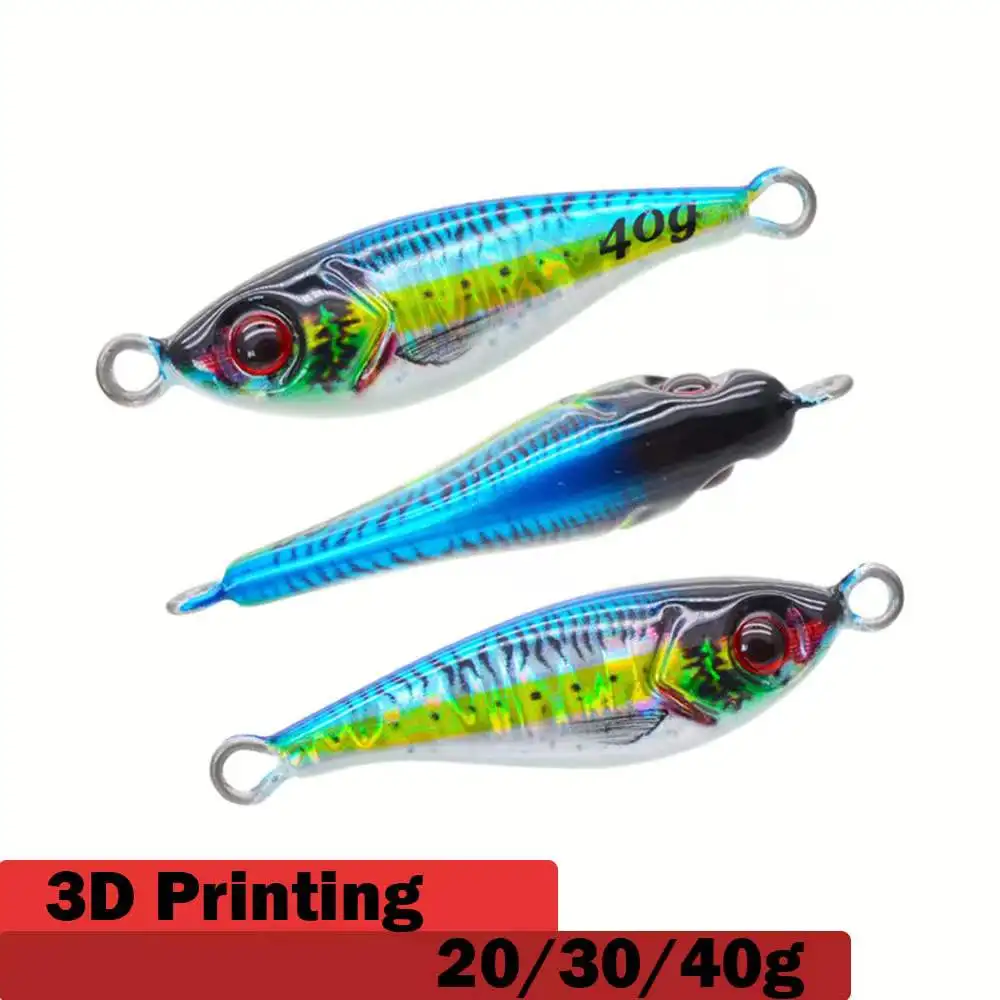 Plantilla de Metal de tono lento con impresión 3D, 20g, 30g, 40g, cuchara de Jigging fundida en la orilla, cebo de pesca para lubina, trucha, agua salada, Señuelos de Jigging