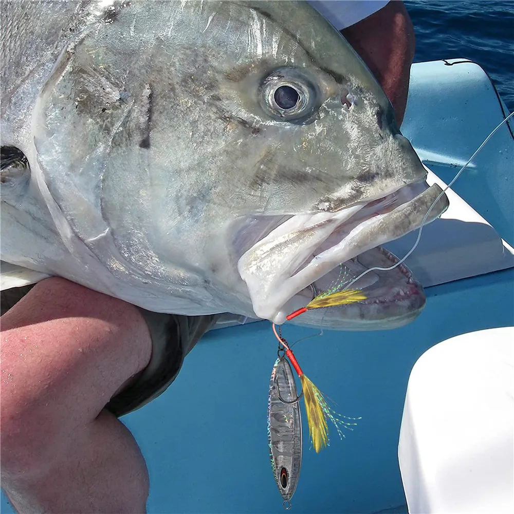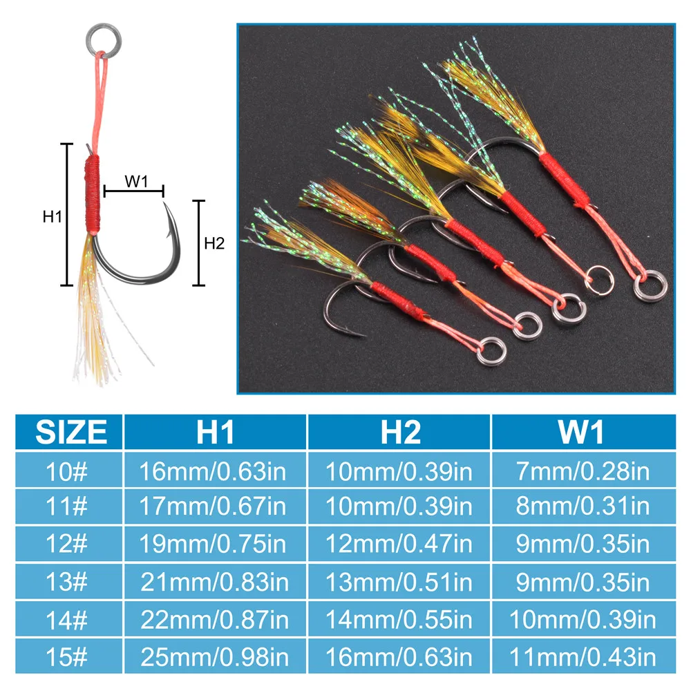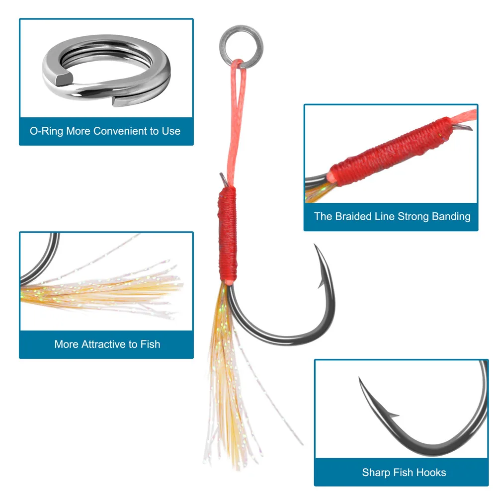 100 piezas de ganchos de ayuda para pesca lenta de Metal, anzuelos para pesca de agua salada con anillos divididos, anzuelos para pesca con mosca