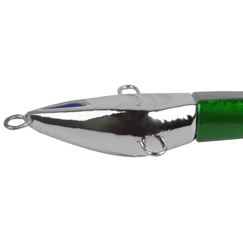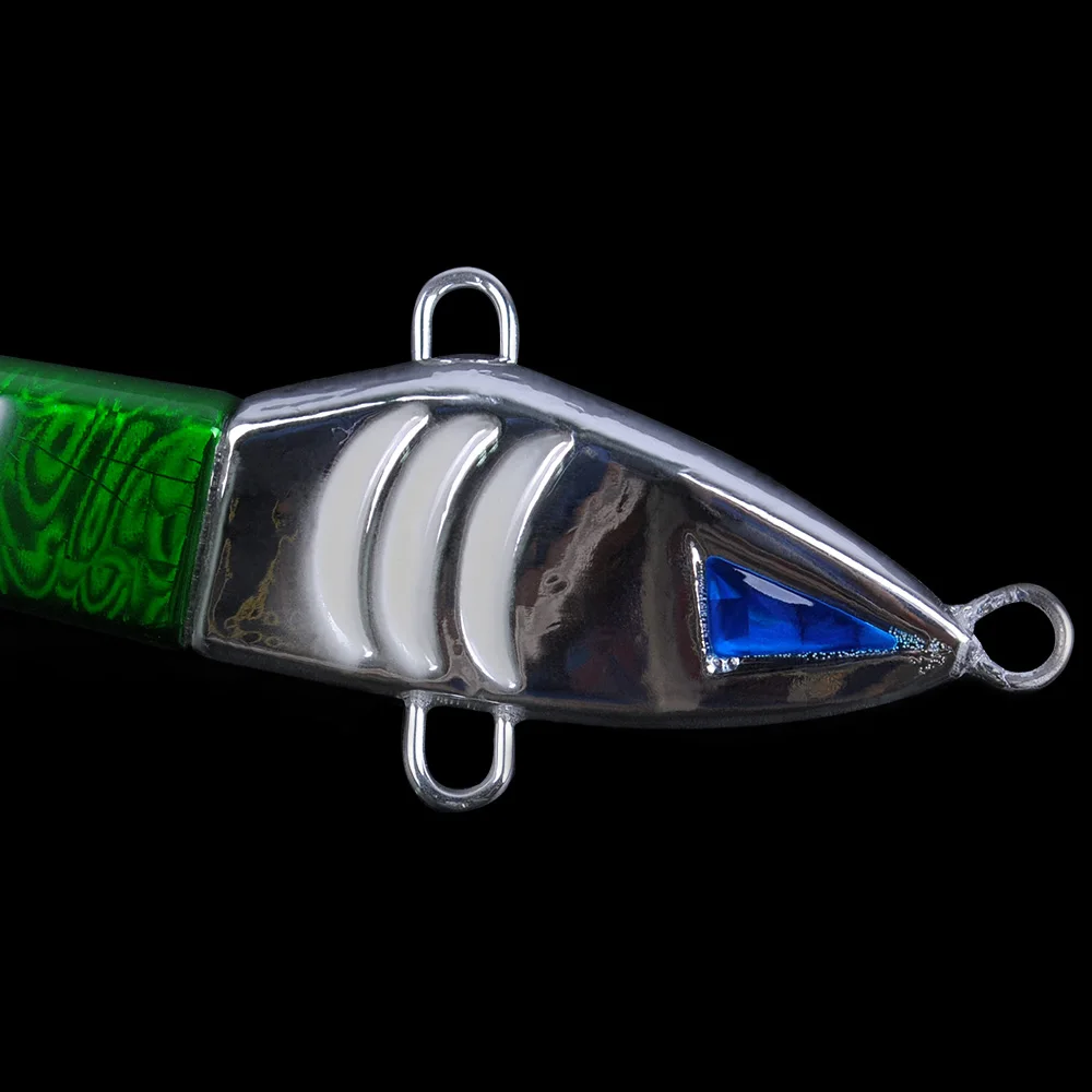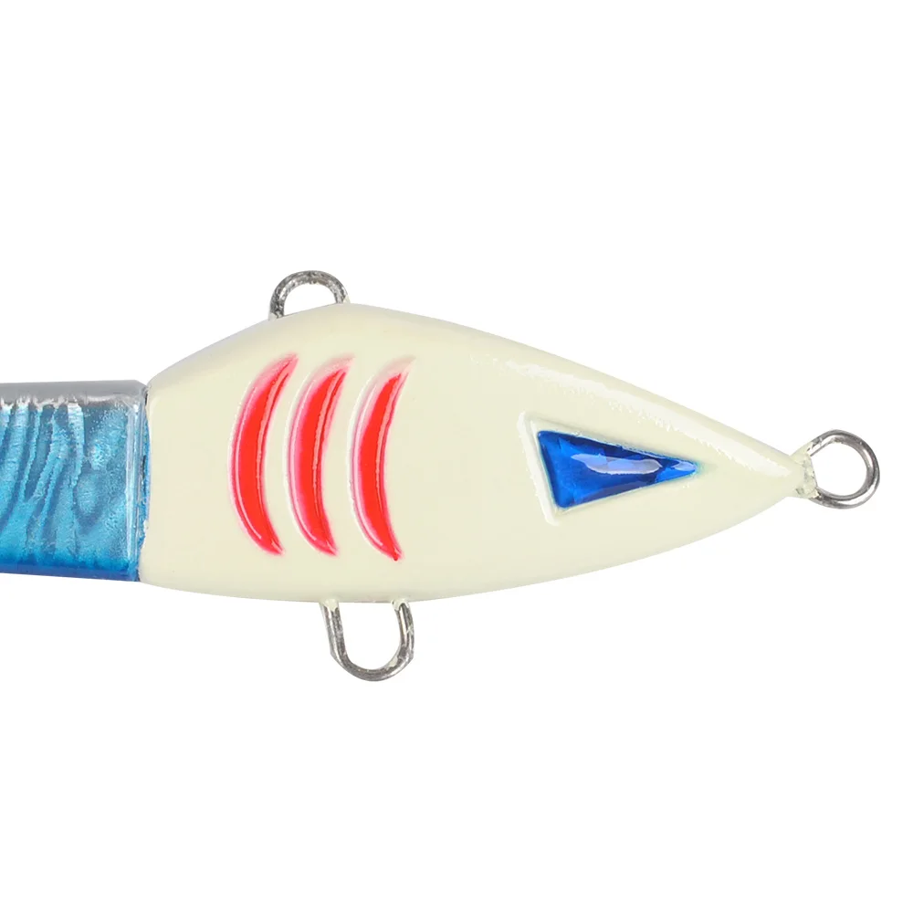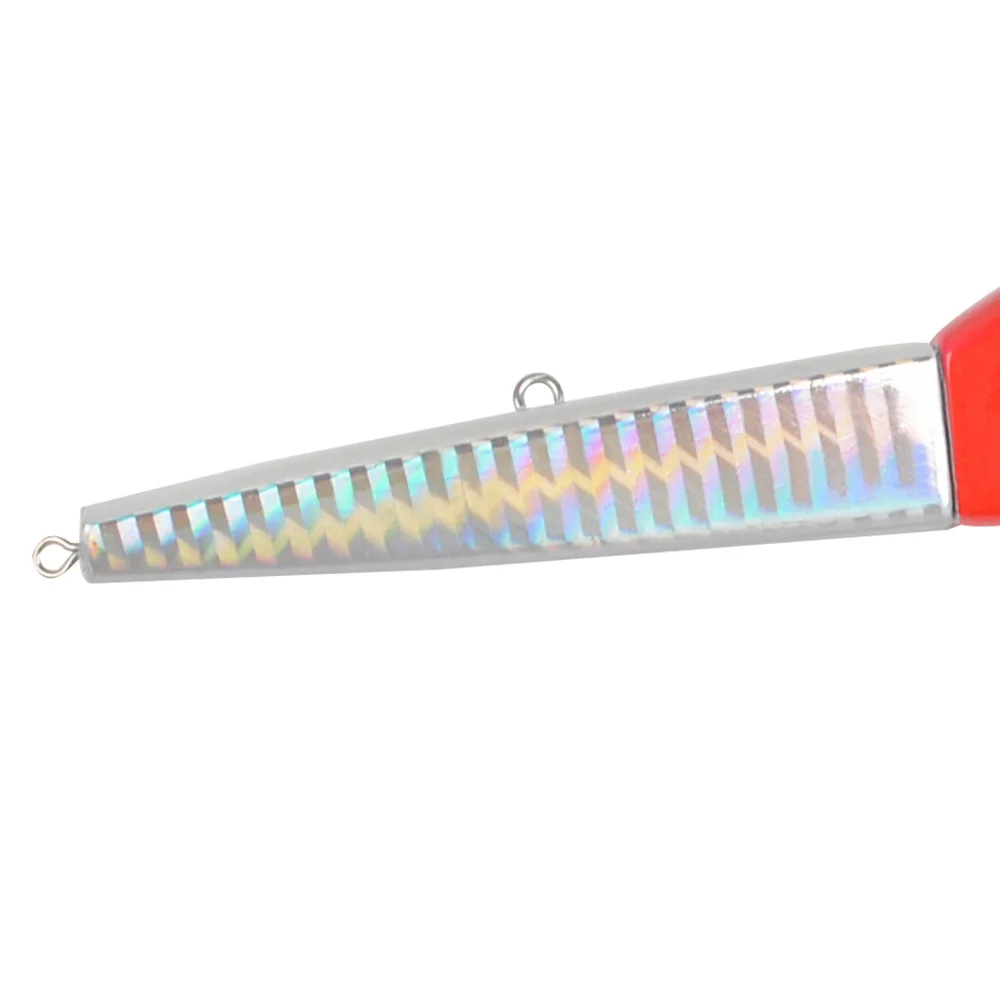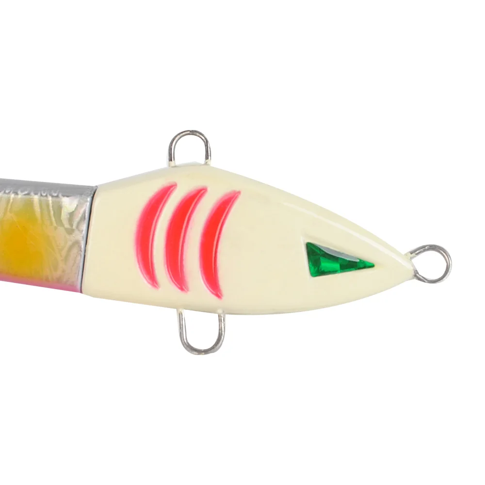 Combinación innovadora de cabeza de metal y cuerpo de pececillo flexible. Cabeza de pez de plomo y cuerpo ABS con pintura holográfica.