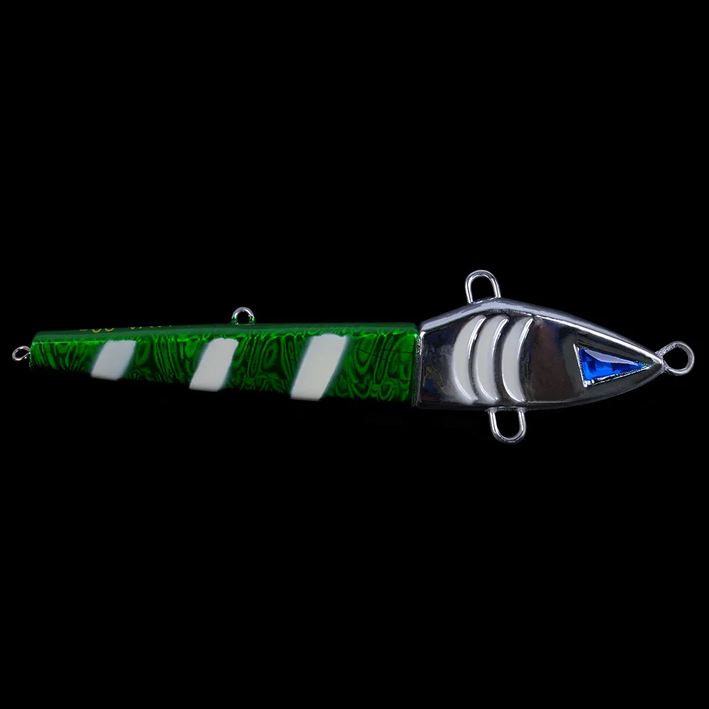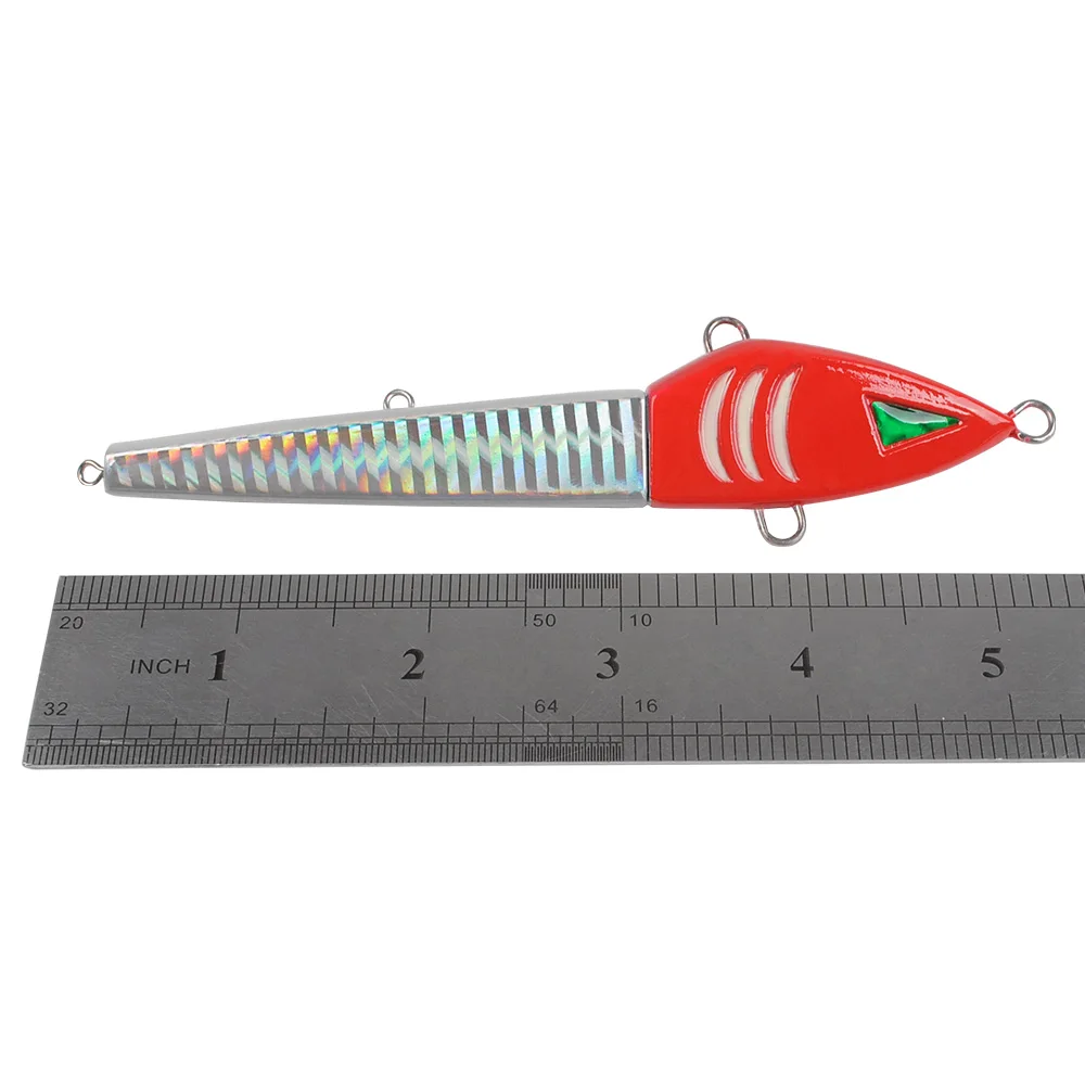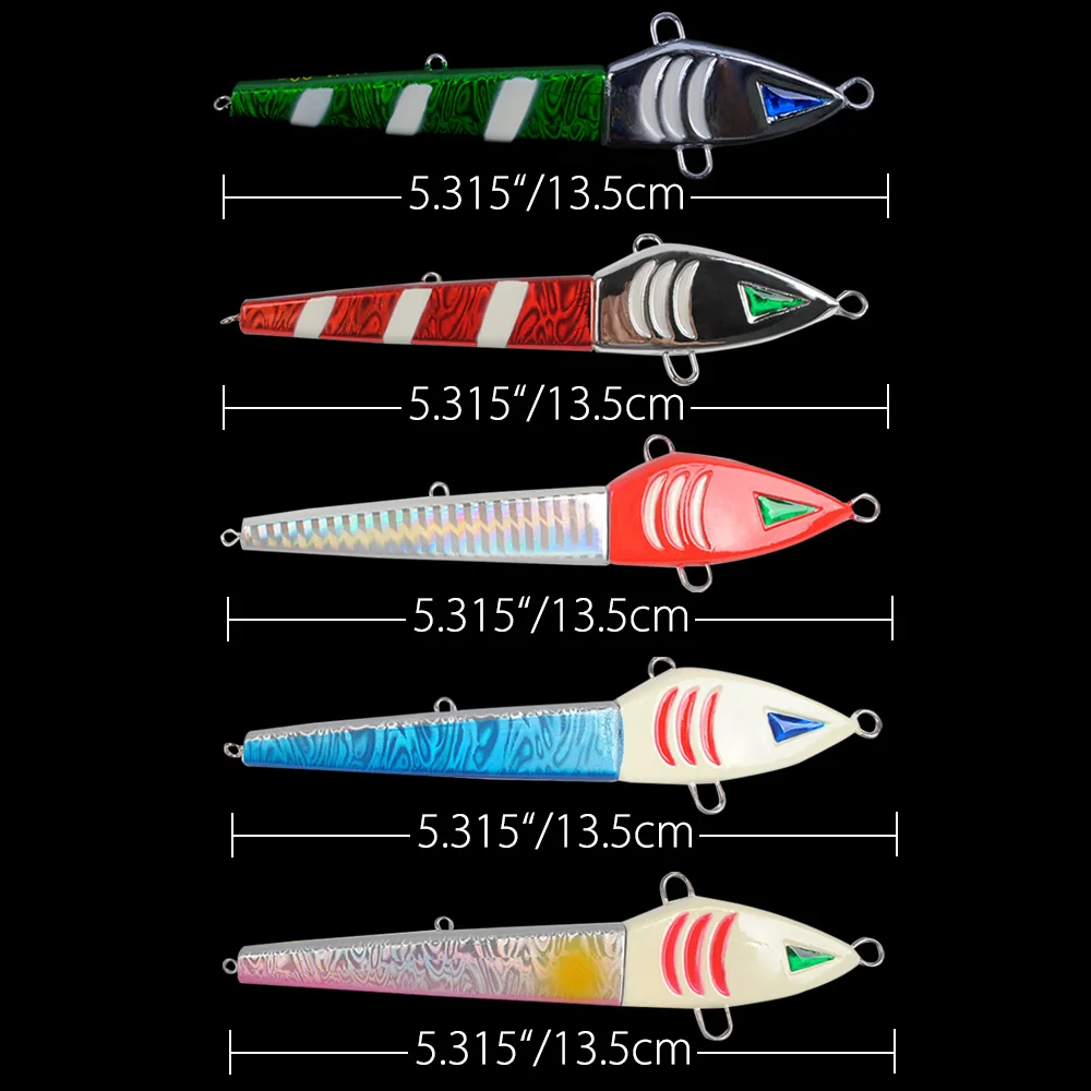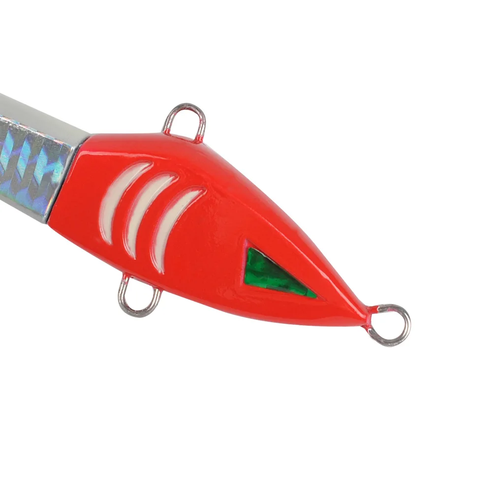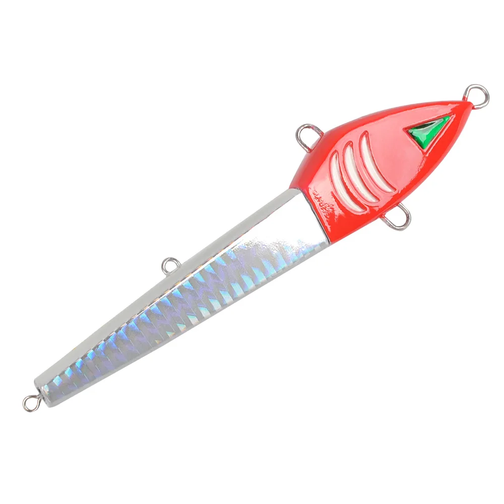 Combinación innovadora de cabeza de metal y cuerpo de pececillo flexible. Cabeza de pez de plomo y cuerpo ABS con pintura holográfica.