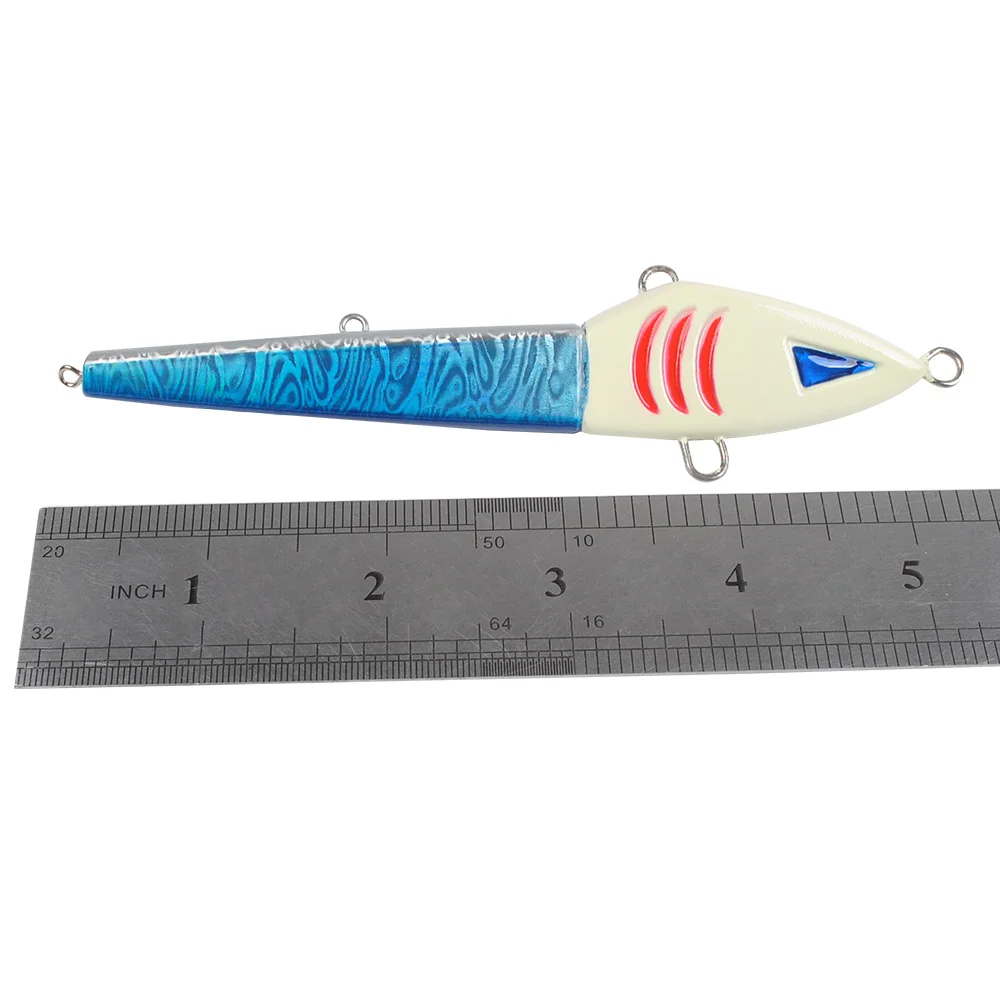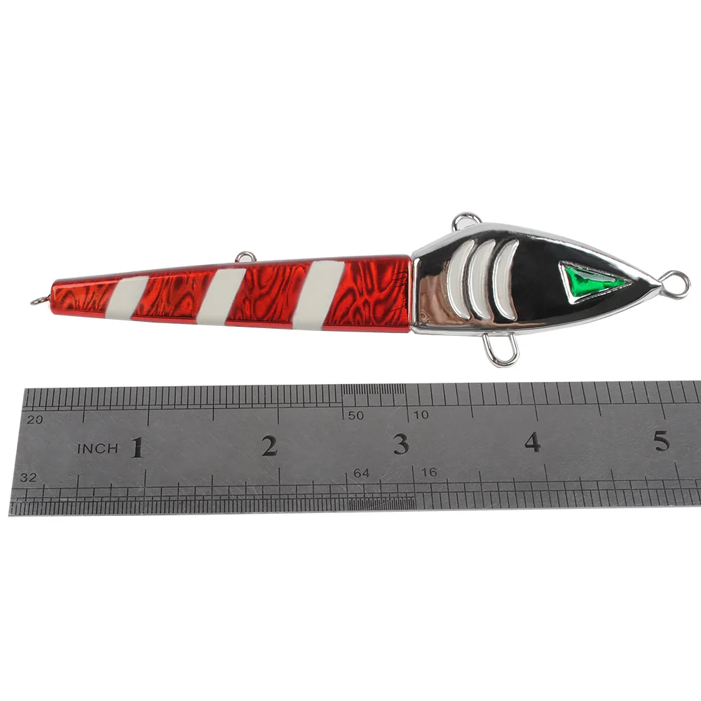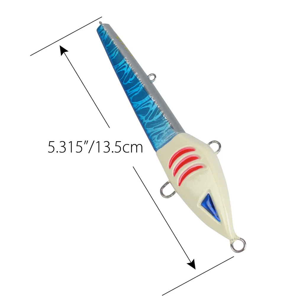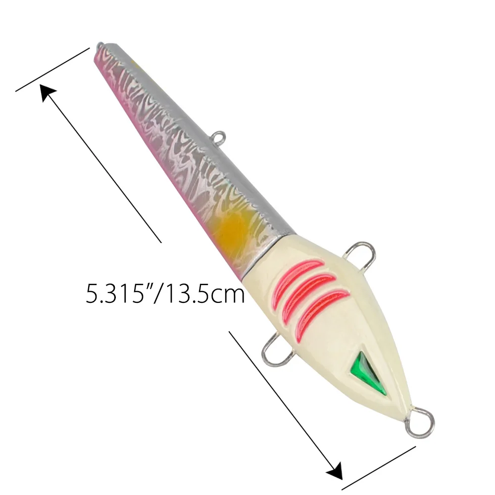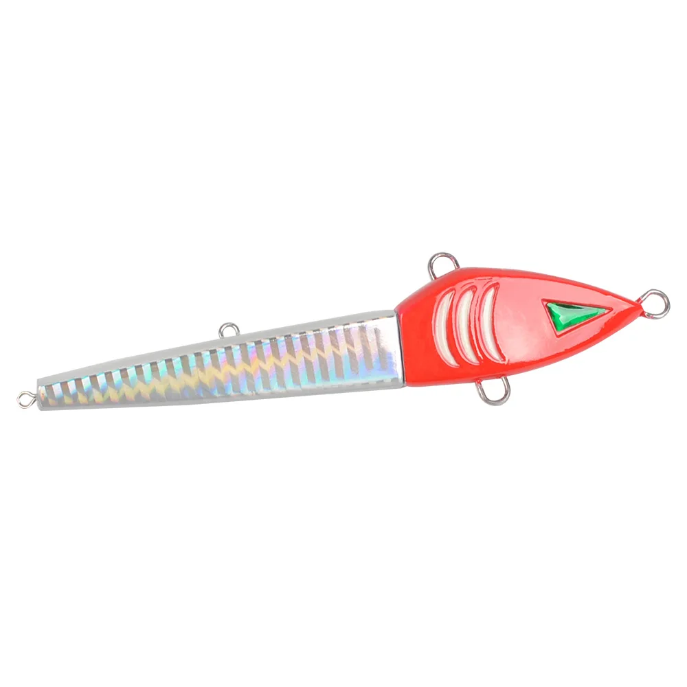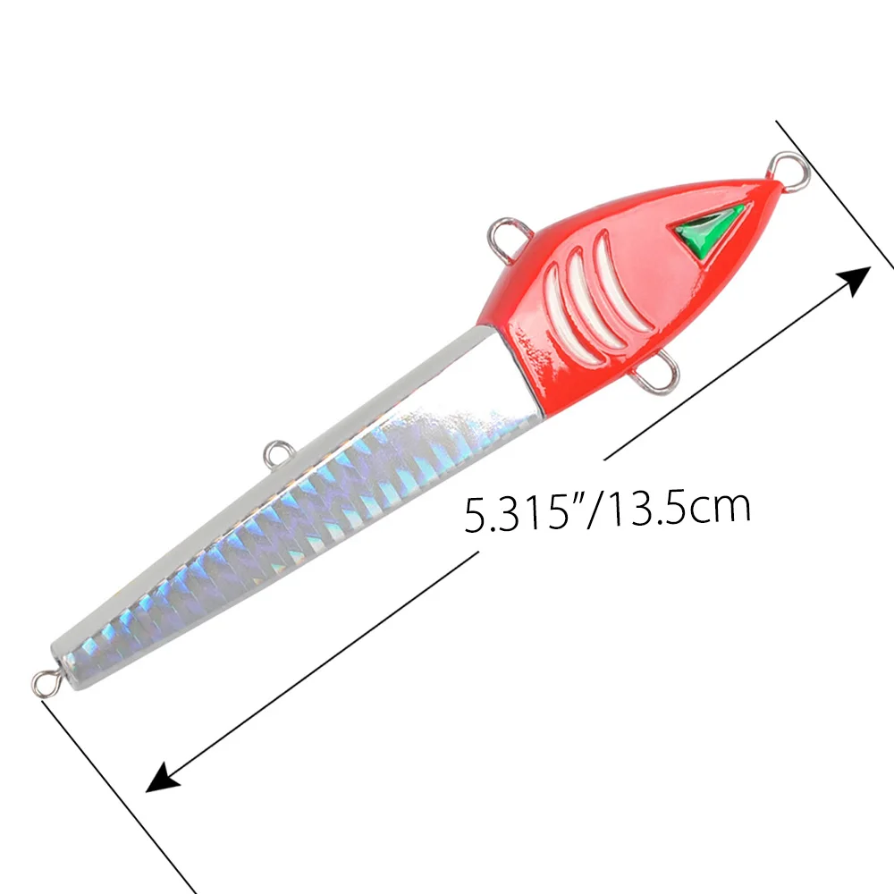 Combinación innovadora de cabeza de metal y cuerpo de pececillo flexible. Cabeza de pez de plomo y cuerpo ABS con pintura holográfica.