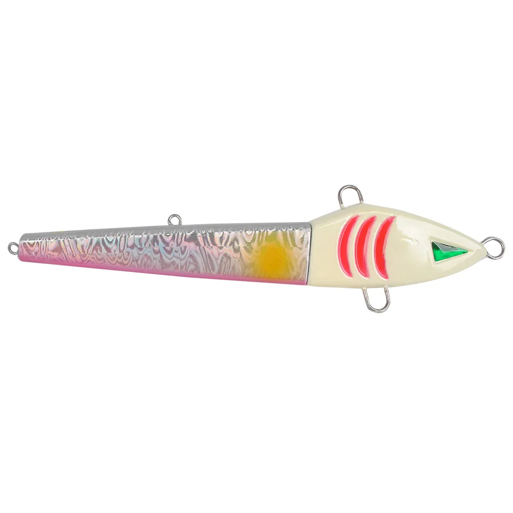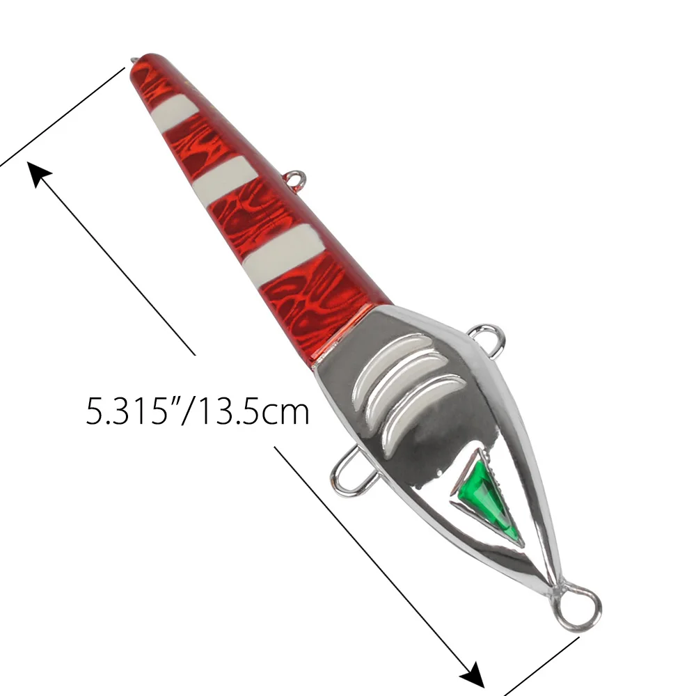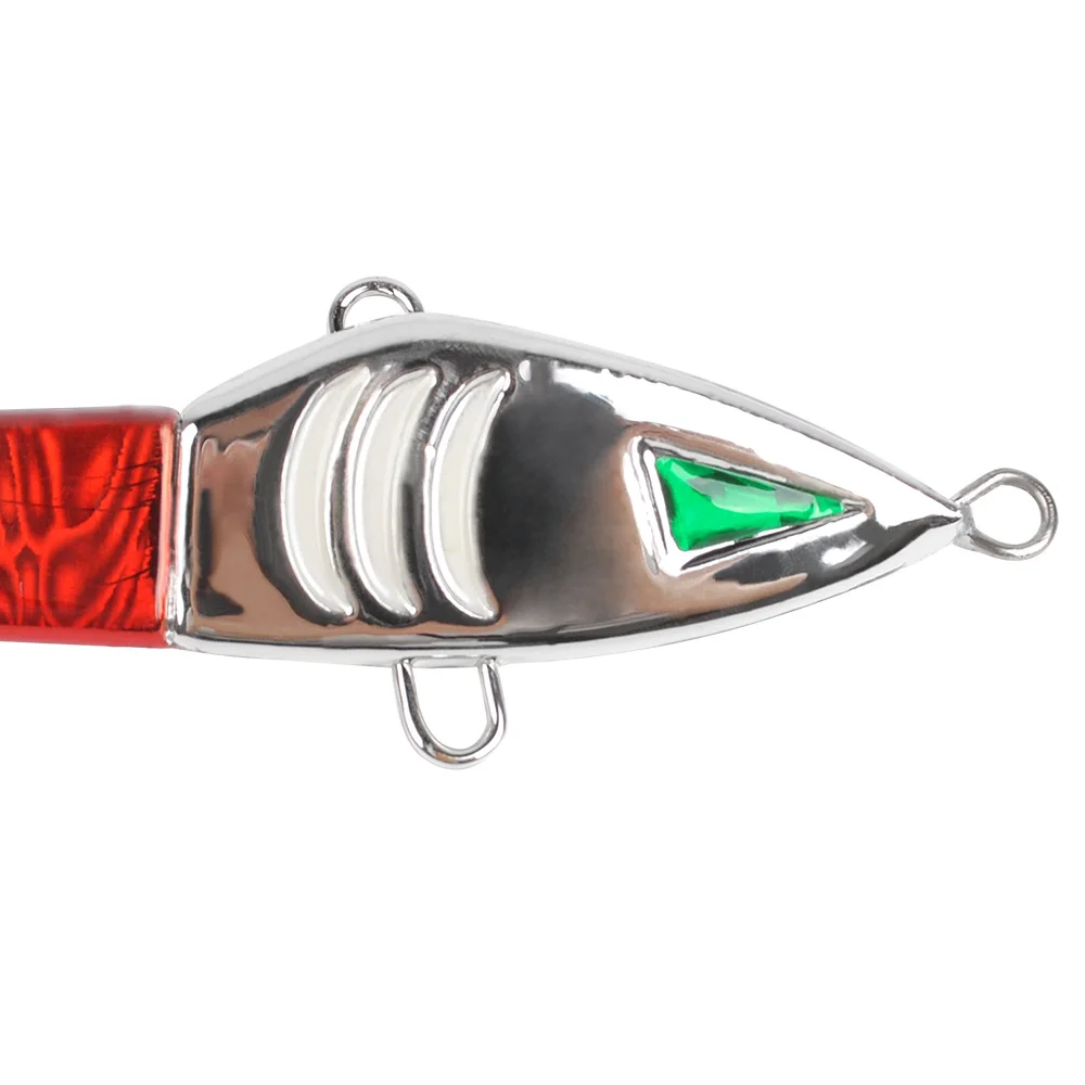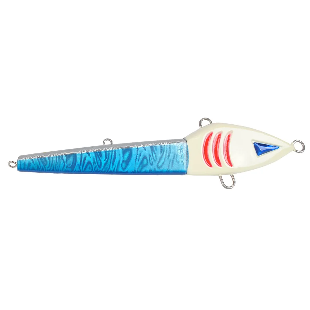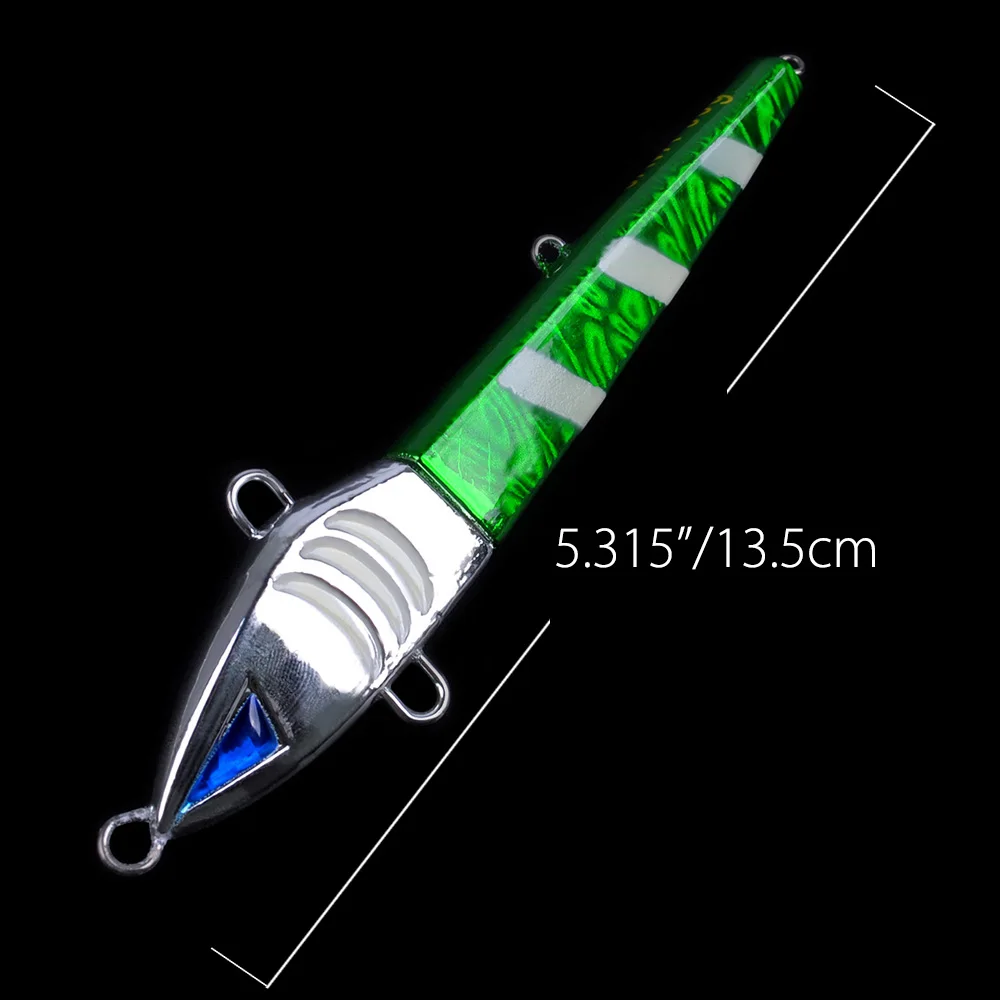 Combinación innovadora de cabeza de metal y cuerpo de pececillo flexible. Cabeza de pez de plomo y cuerpo ABS con pintura holográfica.