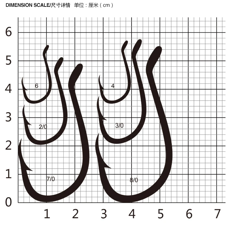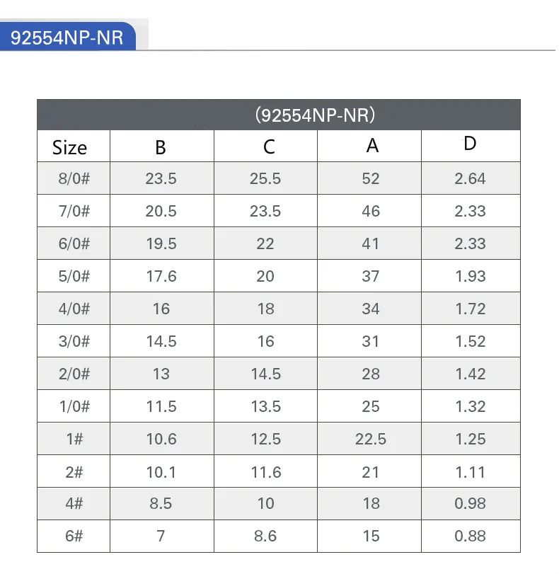 Tamaño:1#, 2#, 4#, 6#, 1/0#, 2/0#,3/0#, 4/0#,5/0#,6/0#,7/0#,8/0#,