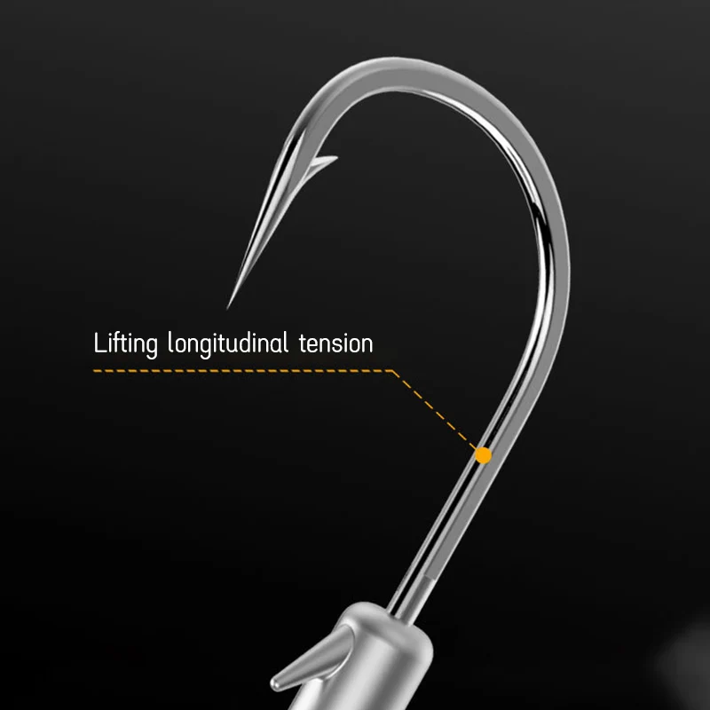 • Diseño DE LA FORMA DE J :El diseño en forma de J del anzuelo asegura que permanezca en la boca del pez, por lo que es más probable que capture peces.