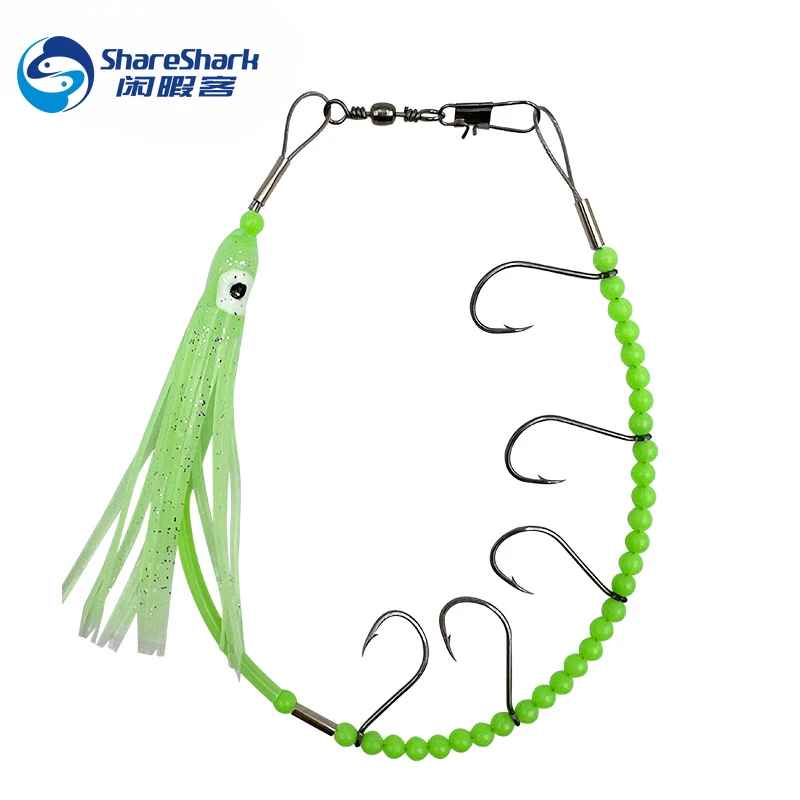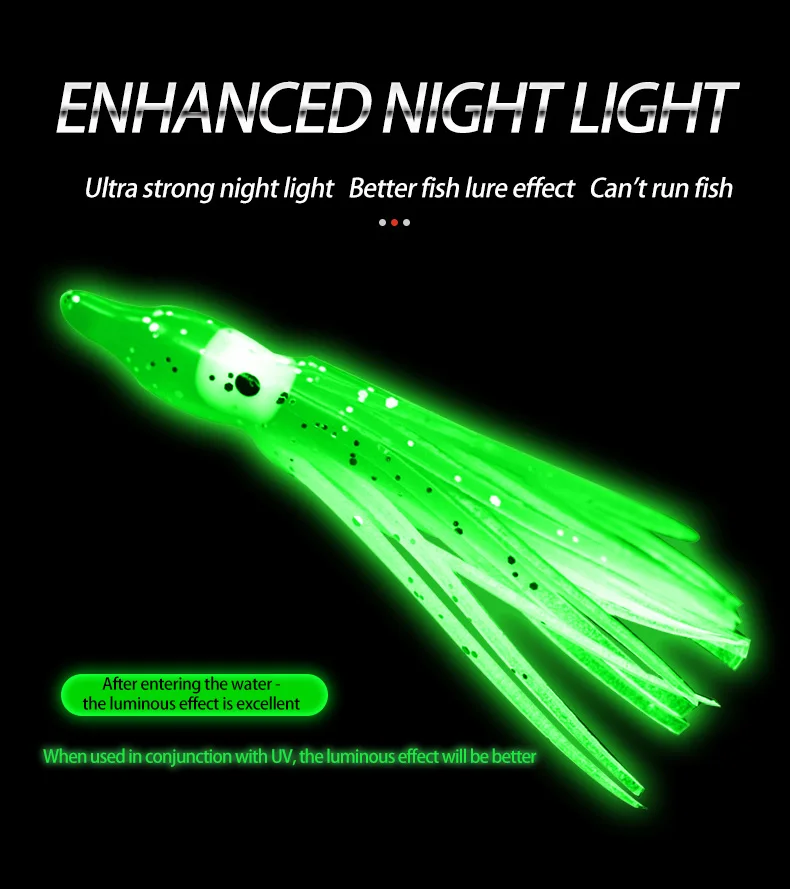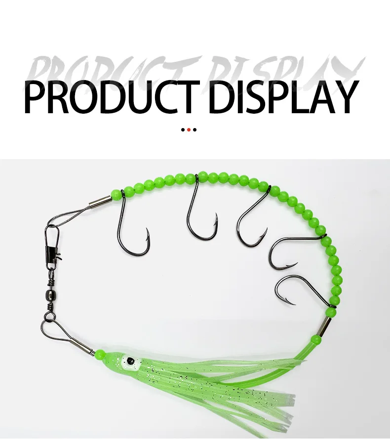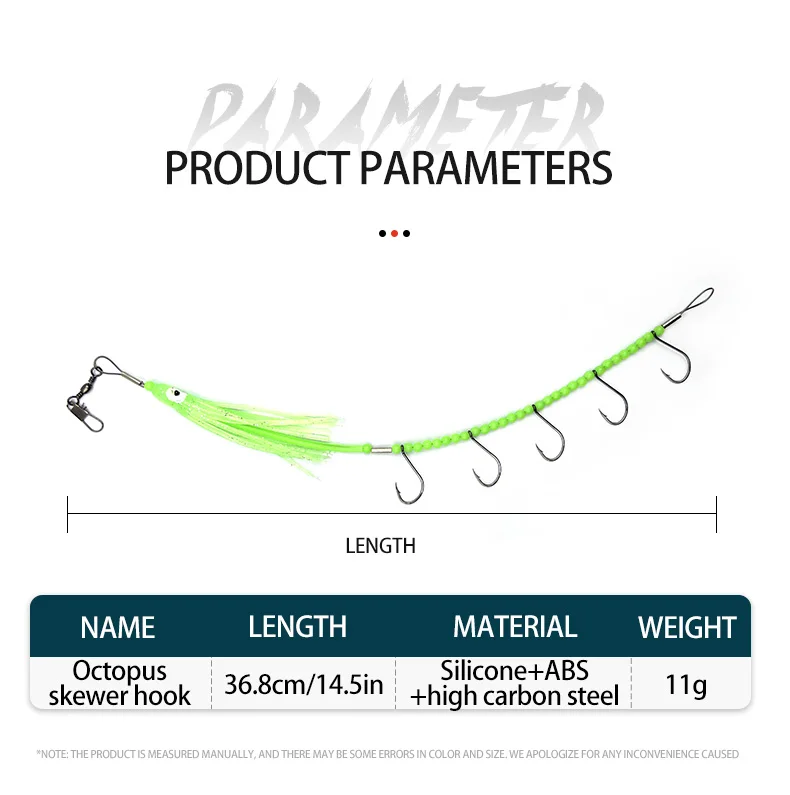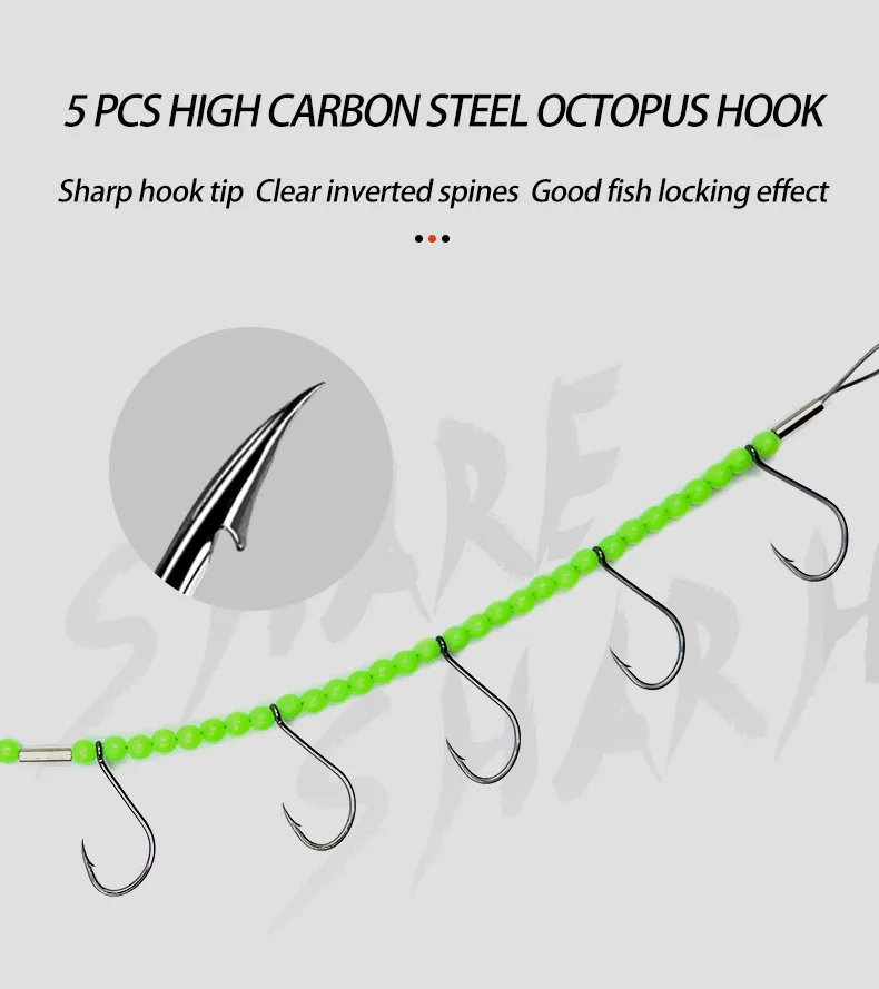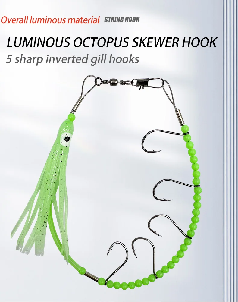 Anzuelos de cuerda de pulpo luminoso de 37cm, gancho de cuerda de falda de calamar de cola de pelo, 5 anzuelos afilados, anzuelo de cuerda de alambre de acero, Señuelos de Pesca artificiales