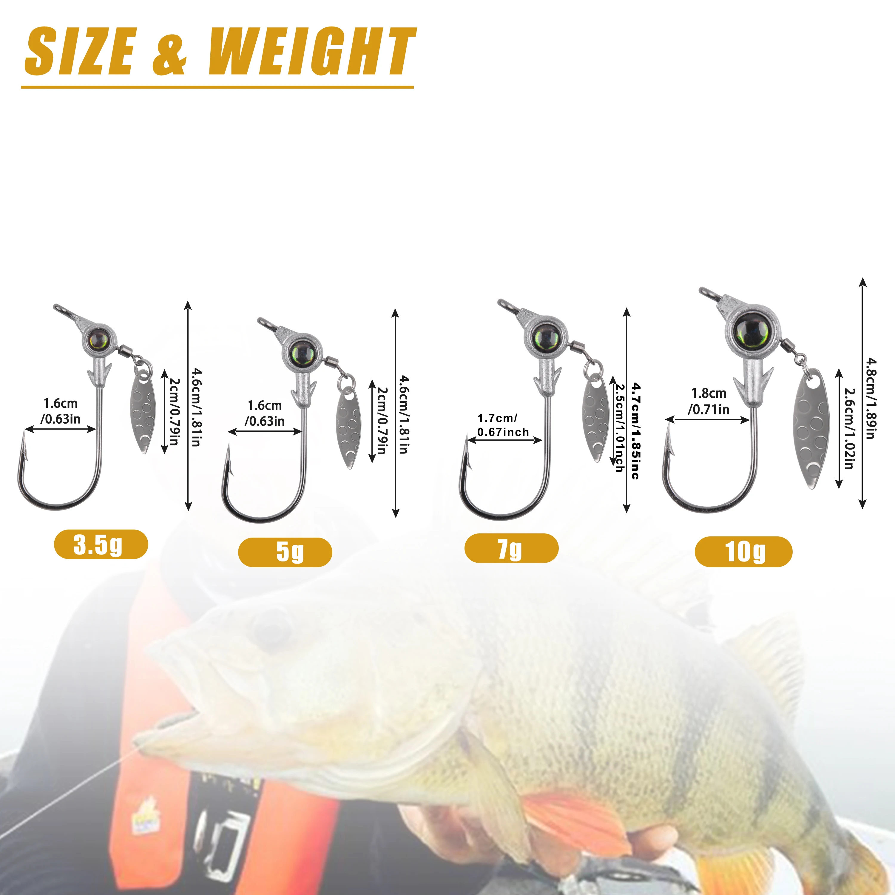 Anzuelos de pesca de 4 piezas, agua salada con anzuelos de hoja giratoria, 3,5g,5g,7g,10g