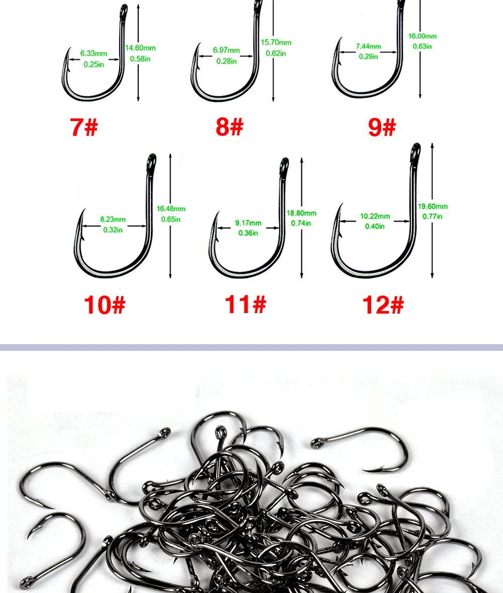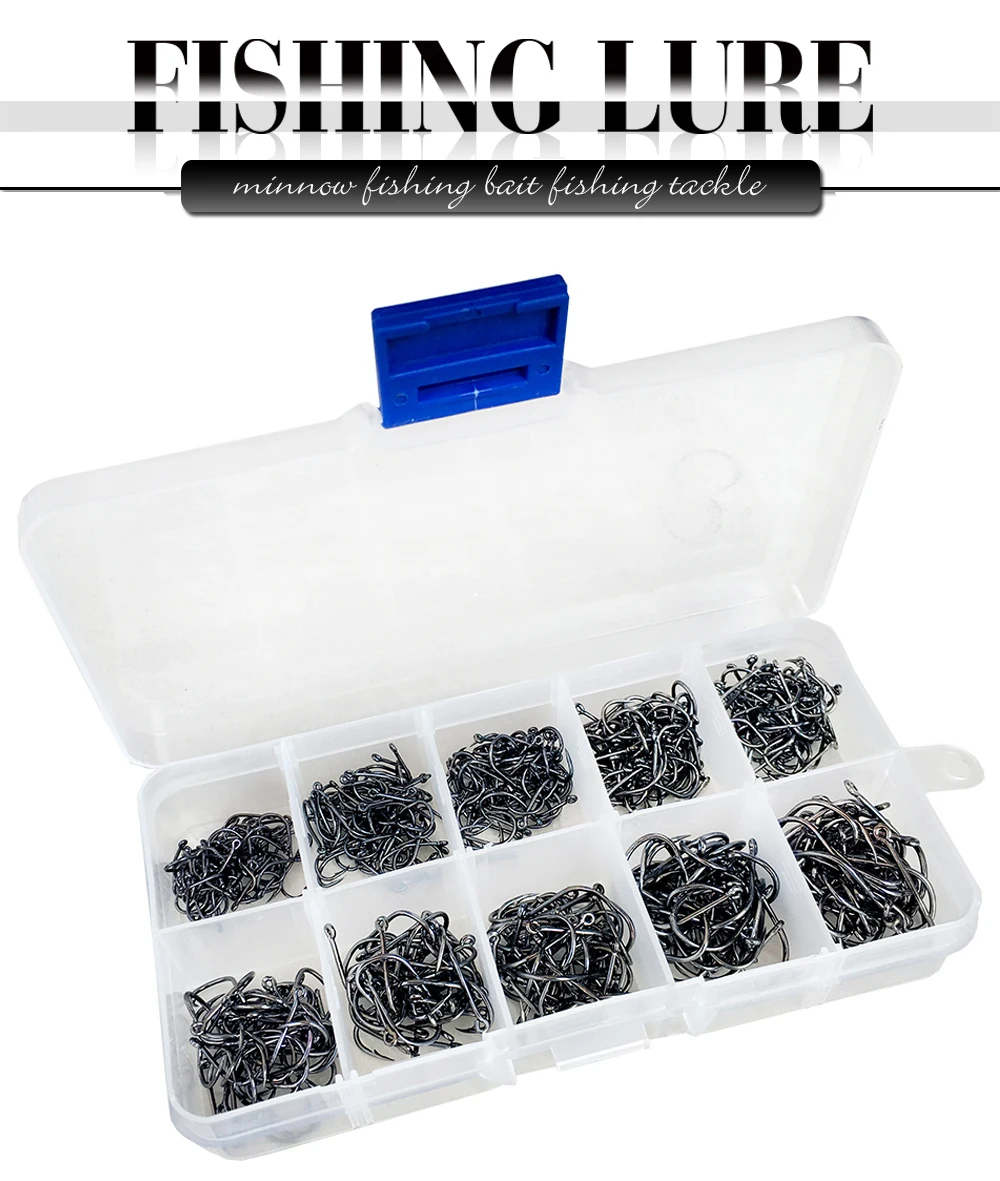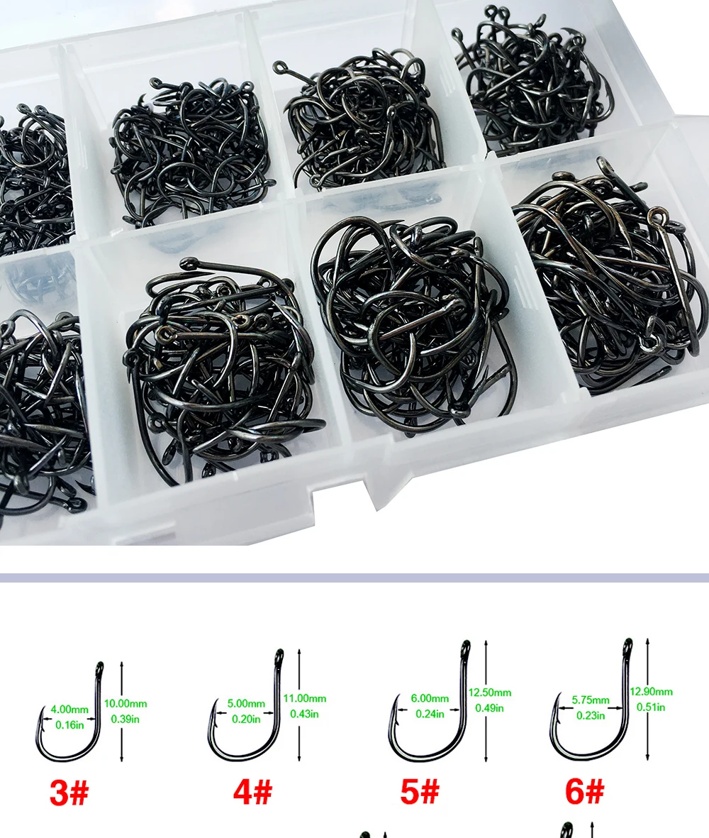 Anzuelos de pesca de 500 piezas, tamaño Mixto 3-12 #, anzuelos con púas