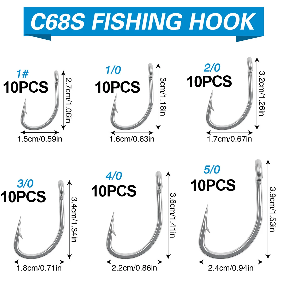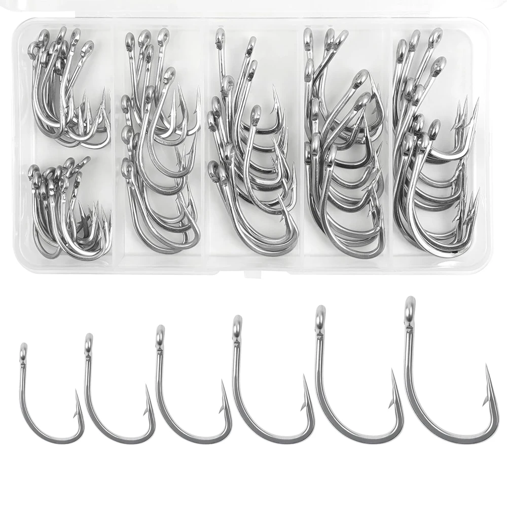 1. Los anzuelos de cebo vivo para grandes juegos están hechos de acero inoxidable 420, afilados más que los anzuelos normales, súper punta de aguja y resistente a la corrosión, más duro y más tiempo antioxidante, adecuado para la pesca en agua salada y dulce.
