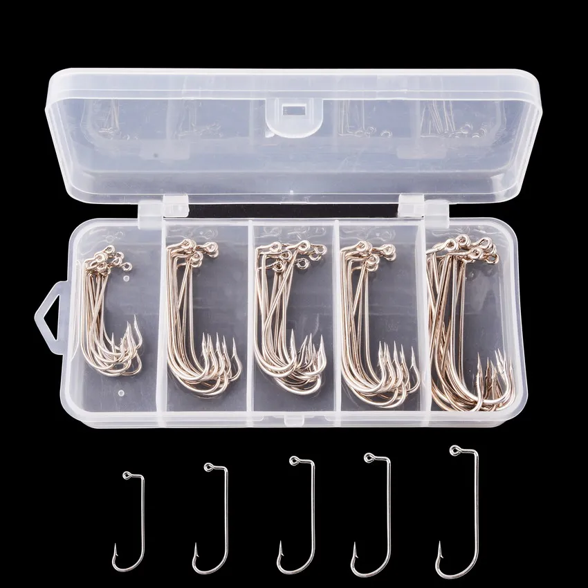 Anzuelos de pesca de 90 grados, alambre fuerte para atar moscas, agua salada, agua dulce, anzuelo Aberdeen Jig, 1, 2, 1/0, 2/0, 3/0 #, 50 unids/lote por caja