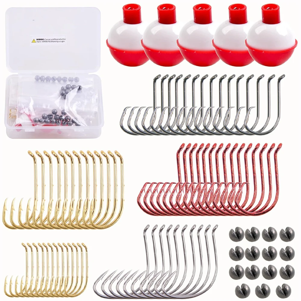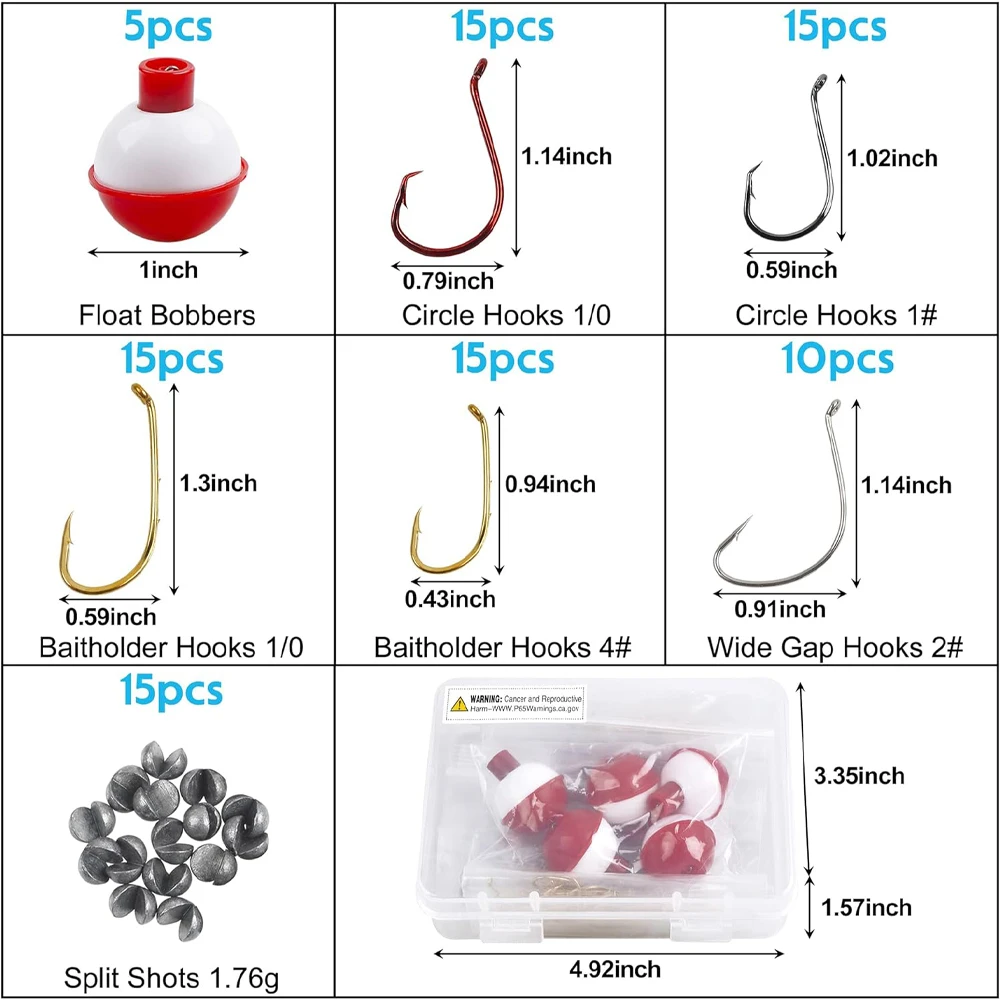 1. Los anzuelos y plomos son los estilos más comunes y varios tamaños para la pesca y los flotadores son un regalo perfecto para niños, amigos, padres, principiantes en la pesca y amantes de la pesca.