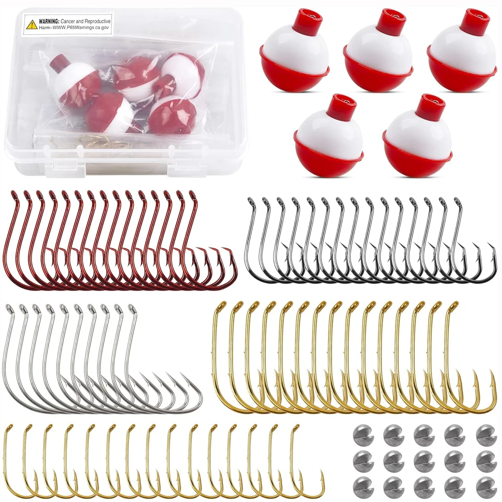 1. Los anzuelos y plomos son los estilos más comunes y varios tamaños para la pesca y los flotadores son un regalo perfecto para niños, amigos, padres, principiantes en la pesca y amantes de la pesca.