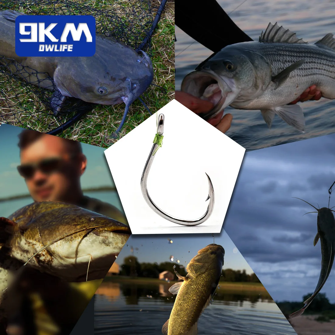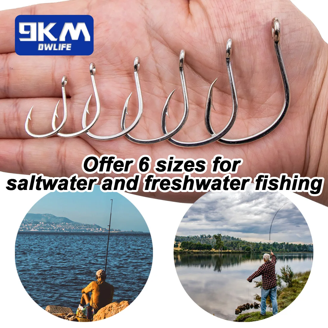 【Saltwater Hooks】High-carbon steel hooks with sharp well design and offset point. Circle hooks design for less mortality rate. Round gape and barbed sharp point which keep fish losses to the minimum.