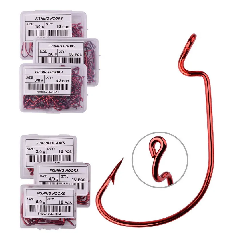 10 unids/set gancho de pesca Carben anzuelo ancho de acero para señuelo de gusano blando 5/0 #-1 # anzuelos de pesca de carpa de bajo
