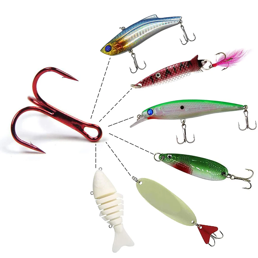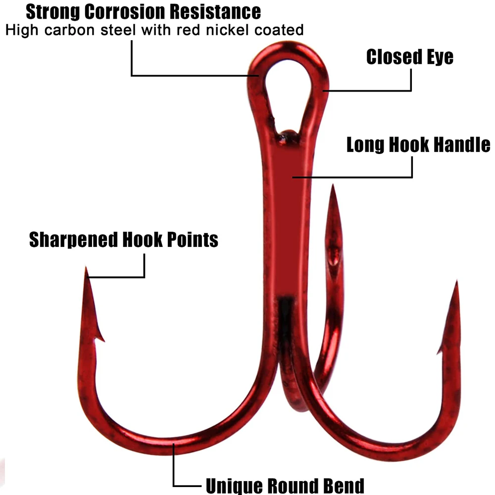 Resistencia: hecho de anzuelos triples de alta resistencia de acero al carbono, ligeros y antioxidantes de alta calidad, más afilados que otros ganchos, ojo cerrado, púas.