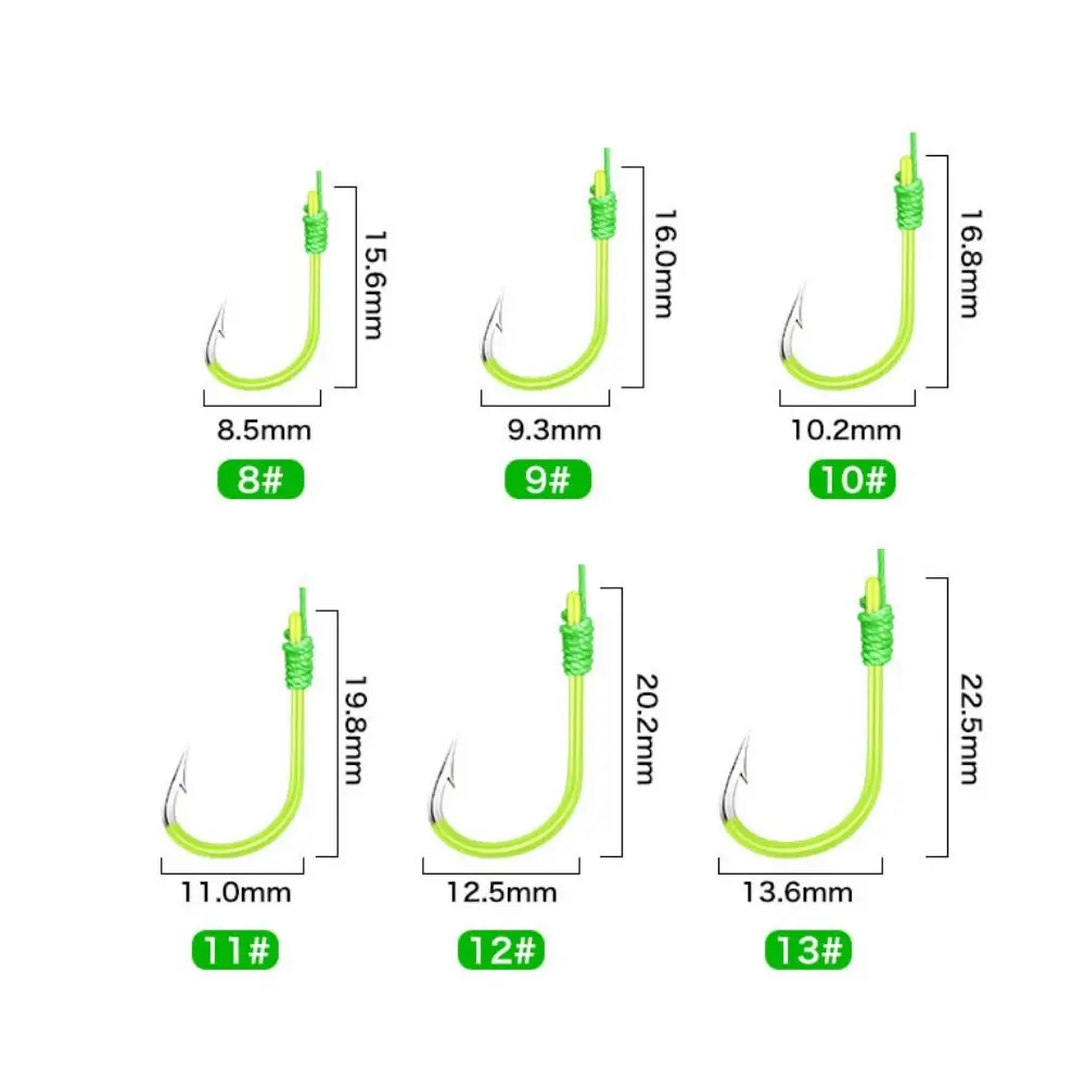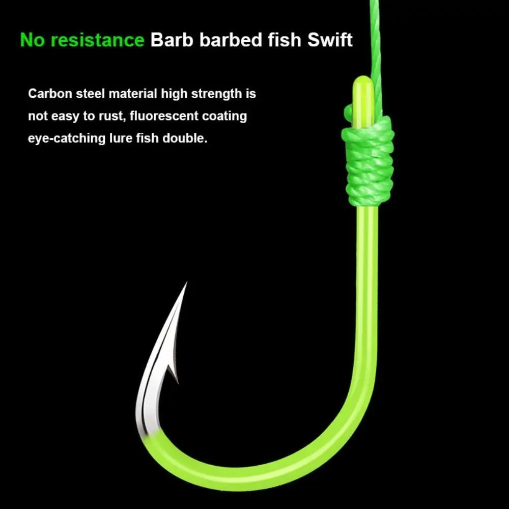 Forma: doble anzuelo Material: acero de alto carbono Color principal: anzuelo de pesca verde Modelo: 8 #-13 # El paquete incluye: 5 unids/bolsa anzuelo de pesca Características: flotador fluorescente, anzuelo flotante, pescado fácil de inhalar. Gancho de separación, no es fácil de envolver. 2 anzuelos para peces en todas las direcciones. La alta resistencia no es fácil de romper. Posición: Pesca en barco oceánico/pesca en roca oceánica/pesca en la playa oceánica/estanque de reserva/