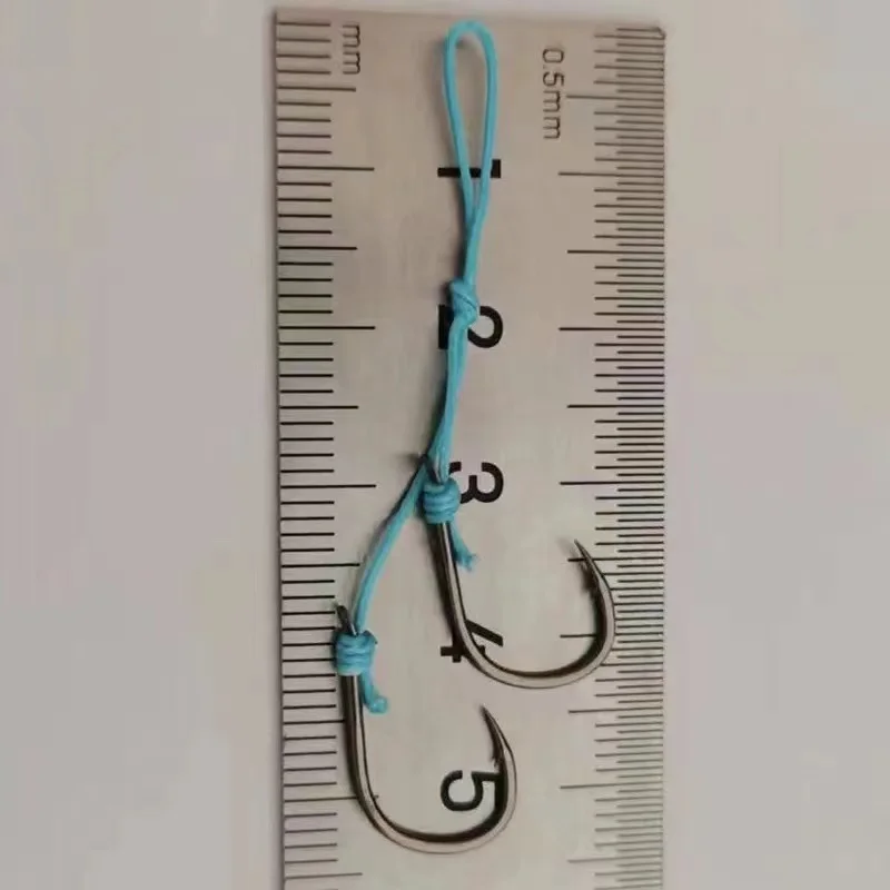 Anzuelos de Pesca de acero de alto carbono con 2 ganchos pequeños, Señuelos de Pesca giratorios, anzuelos de cadena, 8 #-15 #, 100 unids/lote