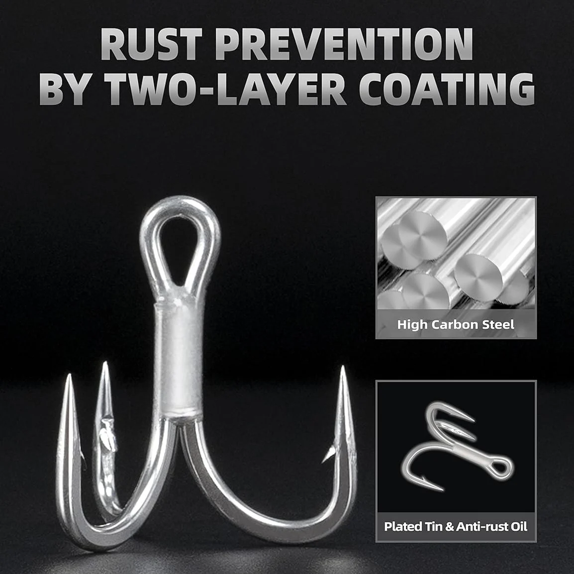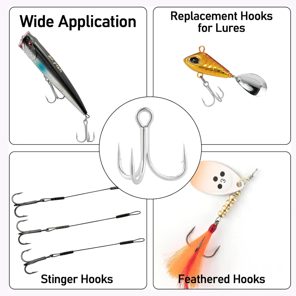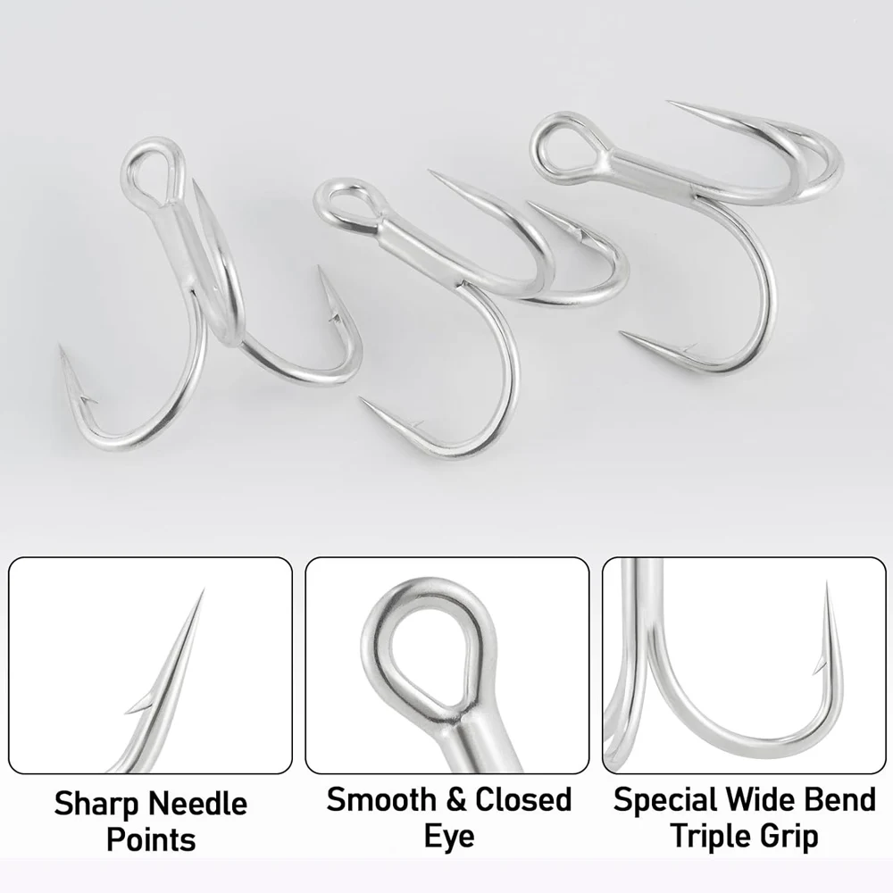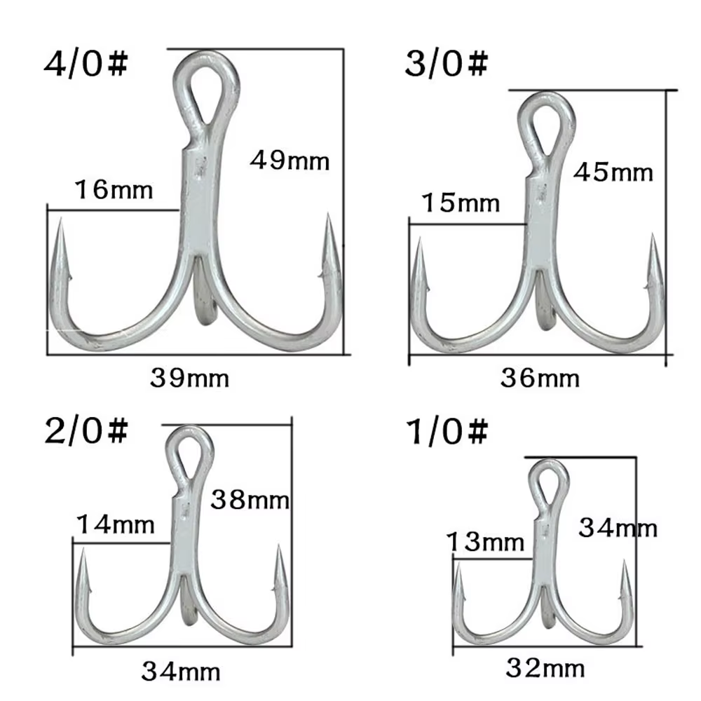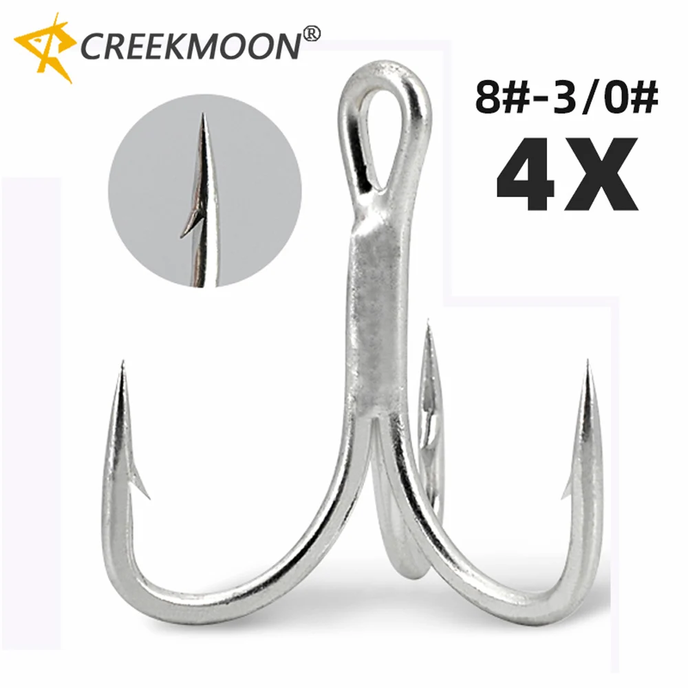 Anzuelos de pesca de acero de alto carbono, anzuelos de pesca de refuerzo triple, anzuelos de asistencia de plantilla de Metal, 50 piezas, 4X, 1/2/4/6/8 #