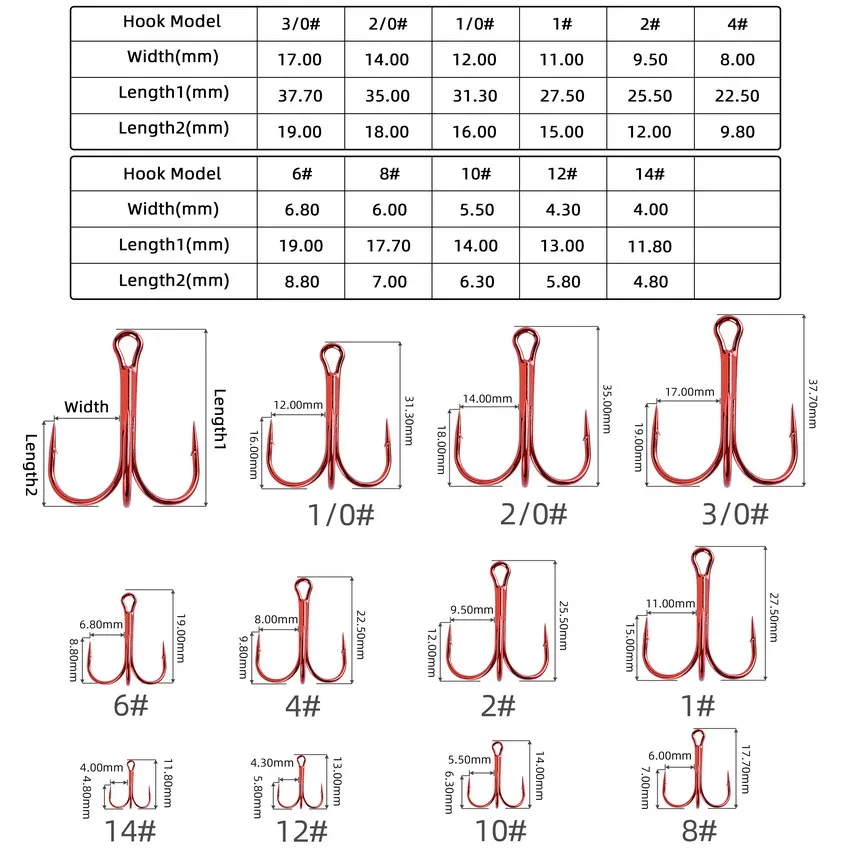 Tamaño del gancho: 3/0 #,2/0 #,1/0 #, 1 #, #2, 4 #, 6 #, 8 #, 10 #,12 #,14 # ganchos