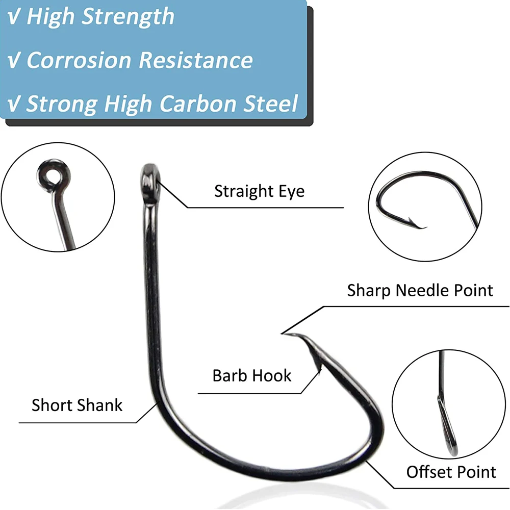Alta resistencia: anzuelos de pesca hechos de acero de alto carbono resistente a la corrosión, adecuados para agua dulce y salada.
