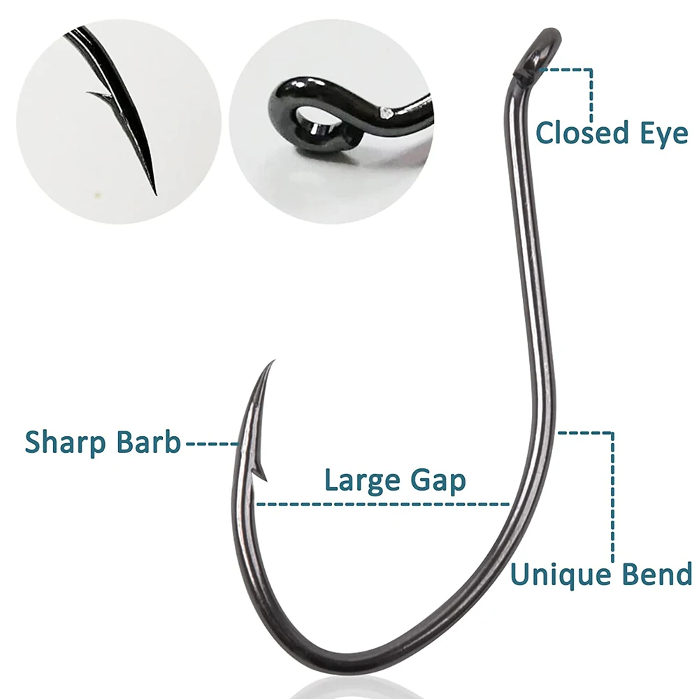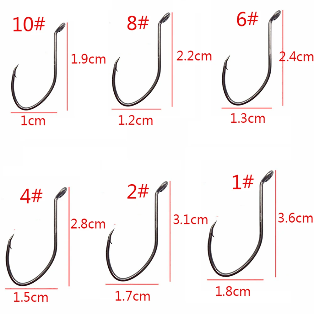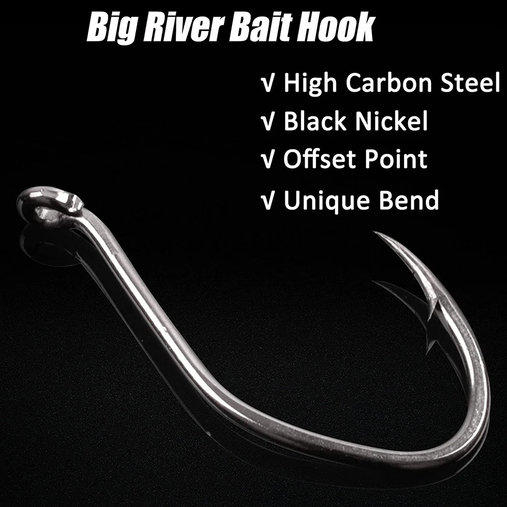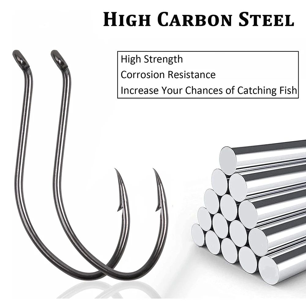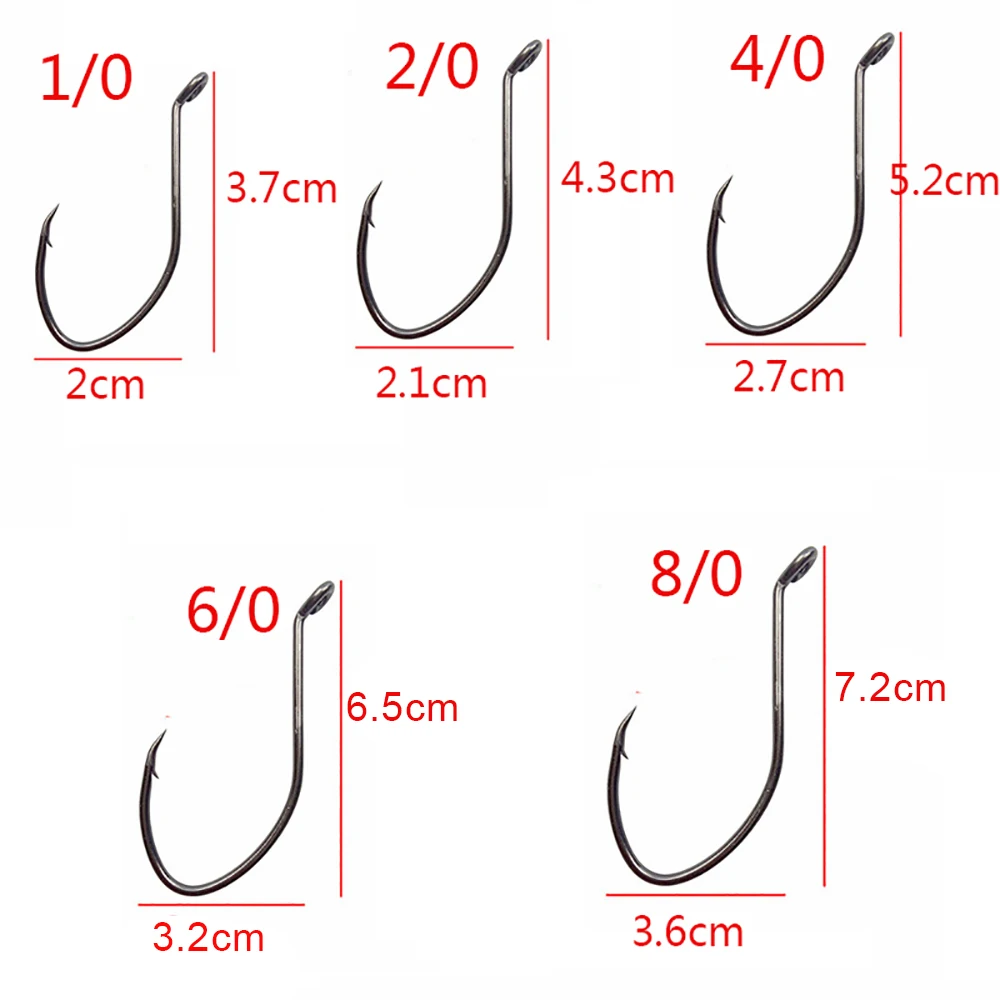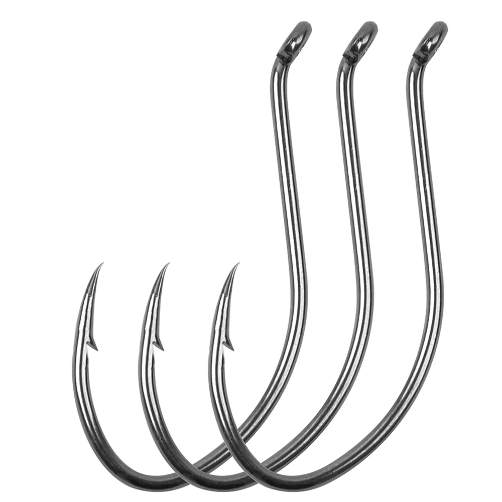 Anzuelos de pesca de bagre de acero de alto carbono 100, #-8/0, cebo de espacio ancho negro, anzuelos de agua dulce/agua salada