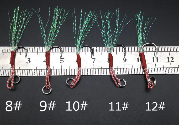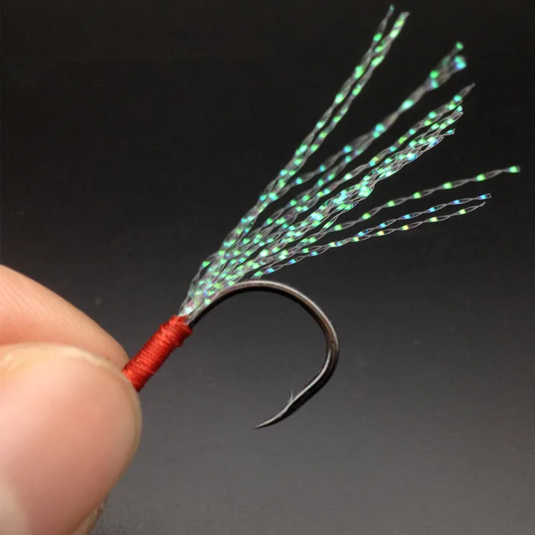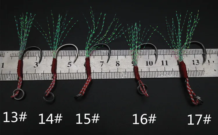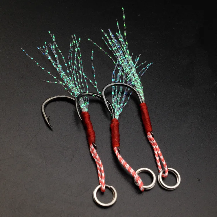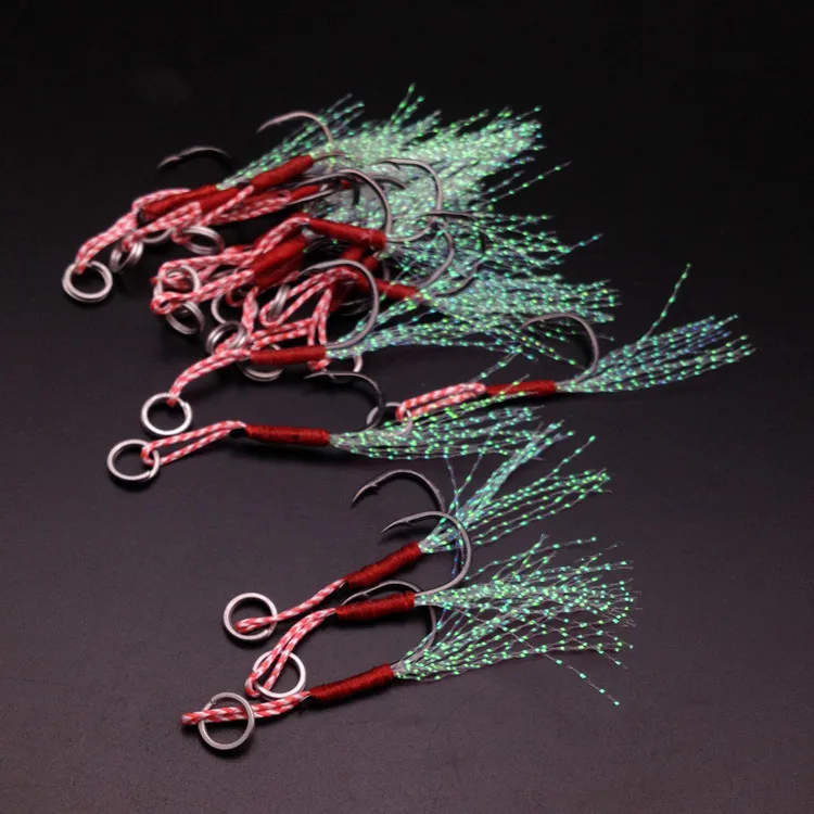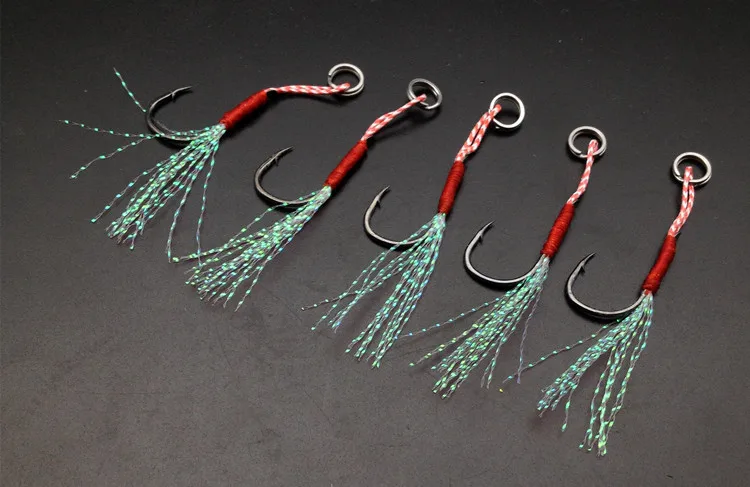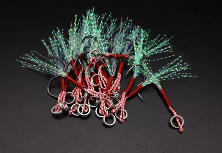 Anzuelos de Pesca de acero con alto contenido de carbono, anzuelos de plantilla individual, pluma de hilo, señuelo de Pesca de Jigging lento, 10-20, lote de 20 unidades