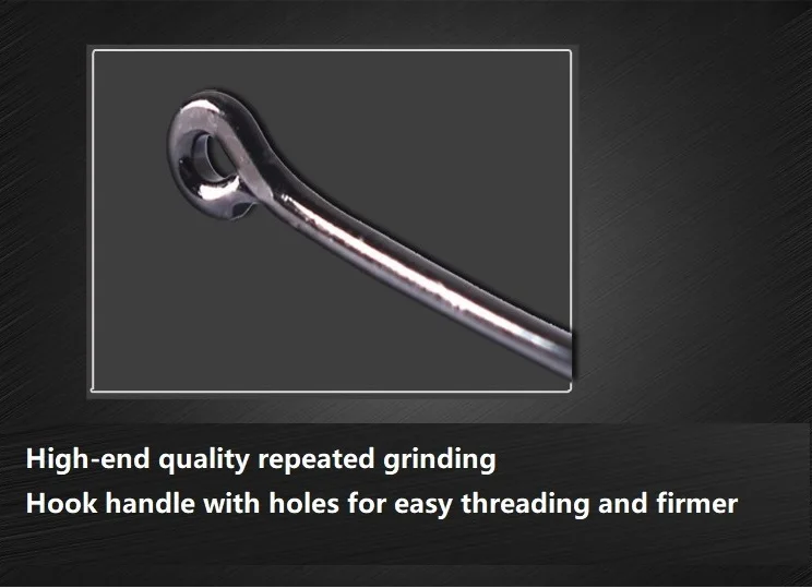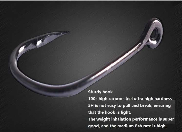 Este gancho está hecho de material duro, fuerte y duradero. Está hecho de acuerdo con los requisitos de la pesca en roca. Está hecho de acero de alto carbono importado y no es fácil de deformar. La punta del gancho está molida químicamente, la superficie está especialmente oxidada y chapada, y tiene una alta resistencia al desgaste y a la corrosión. La parte superior del gancho.