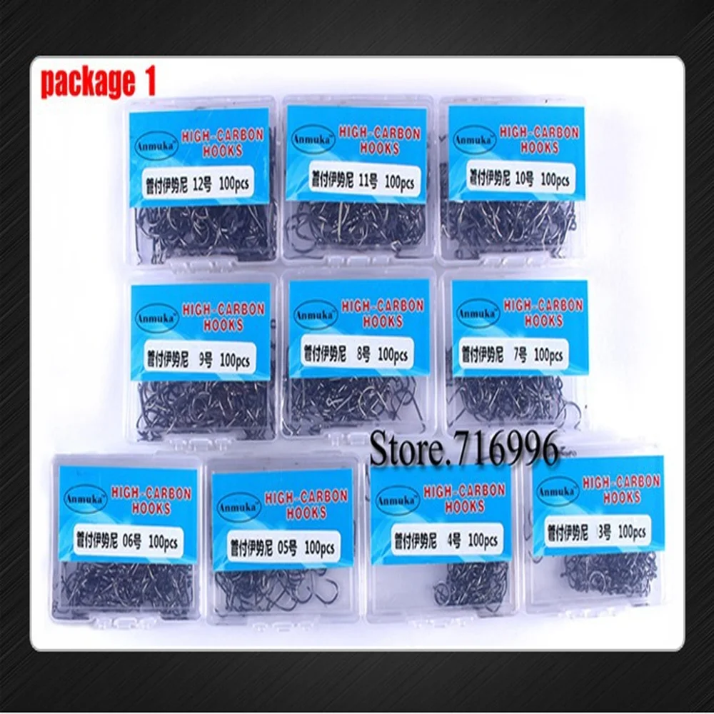 50 unids/lote anzuelo de pesca de acero de alto carbono 3 #-16 # para anzuelos con mosca Plantilla de púas con agujero para accesorios de pesca gratis con caja