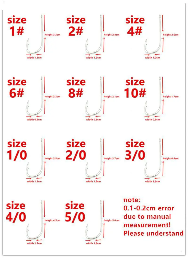 Tamaño: 1 #2 #4 #6 #8 #10 #1/0 2/0 3/0 4/0 5/0
