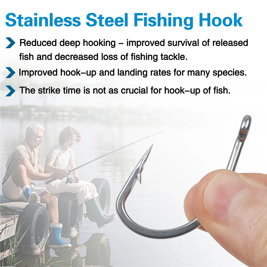 1. Los anzuelos de cebo vivo para grandes juegos están hechos de acero inoxidable 420, afilados más que los anzuelos normales, súper punta de aguja y resistente a la corrosión, más duro y más tiempo antioxidante, adecuado para la pesca en agua salada y dulce.
