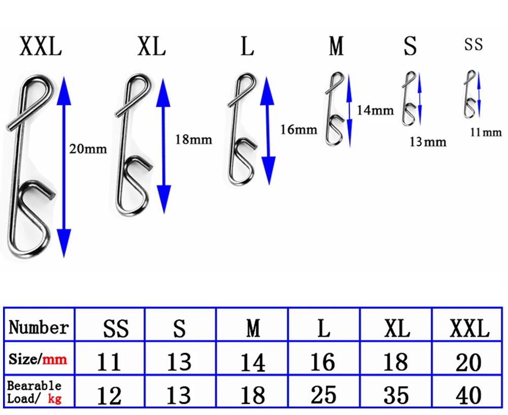Anzuelos de pesca de acero inoxidable, cierre de gancho giratorio, anillos sólidos, broches de seguridad, conector, herramienta de pescado, SS, S, L, XL, XXL, 50-100 unids/caja