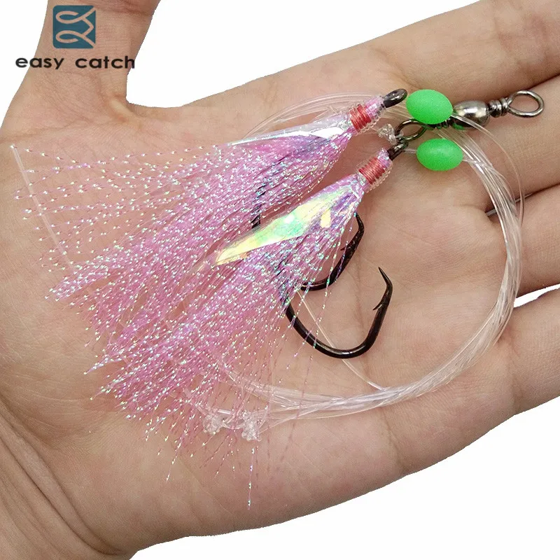40 piezas=20 paquetes de plataformas de cebo de pesca intermitente de agua salada 2 ganchos grandes de brazo pesca marina flash de cristal rosa con barril giratorio para arenque