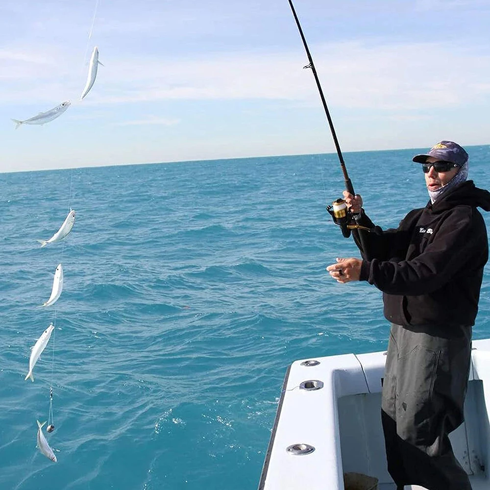 Aparejos de pesca de agua salada, pez rojo de piel de señuelo, anzuelos de pesca blandos, anzuelos de pesca con línea, 20 paquetes