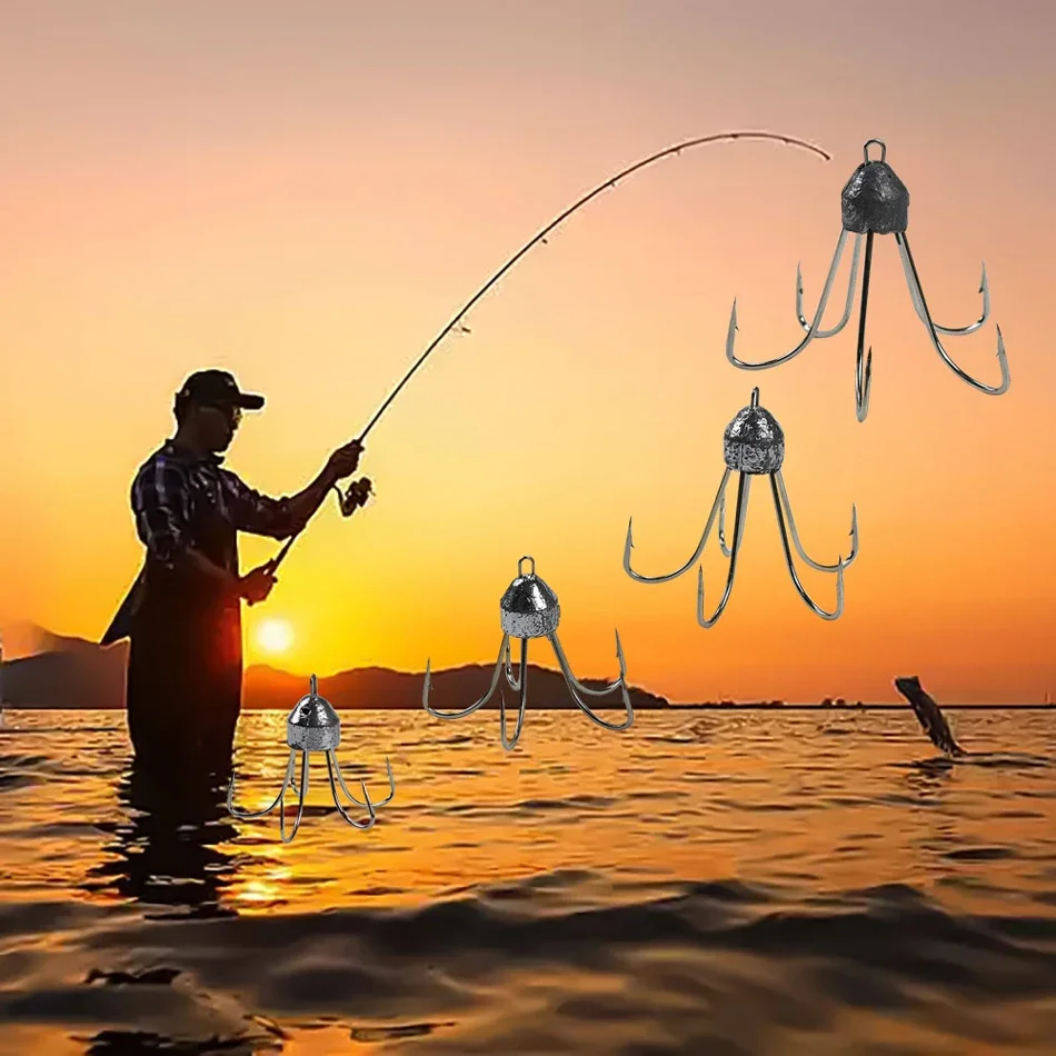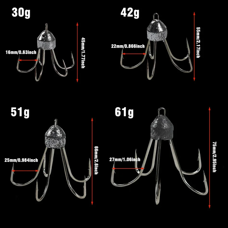 Anzuelos de pesca con ancla de cinco garras de acero rico en carbono, anzuelos grandes con peso de plomo y pesas 30g 40g 50g 60g