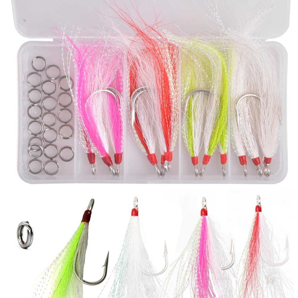 Juego de Anzuelos de Pesca de Acero Inoxidable, Cebo Artificial con Anillos Divididos, Señuelos de Pesca de Agua Salada, 32 Unidades por Caja
