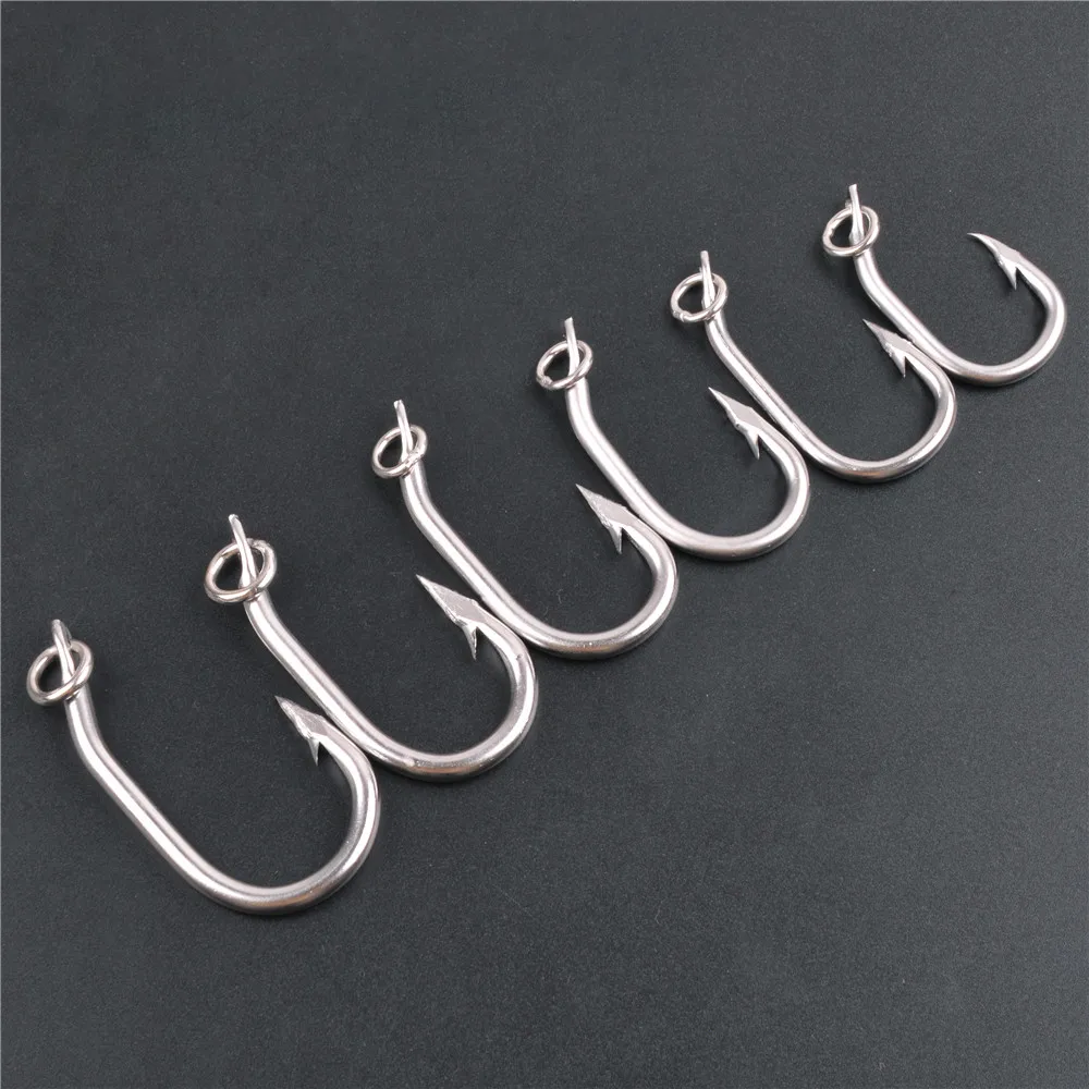 50 piezas de anzuelos fuertes para pesca de atún, gran juego de acero inoxidable, cebo vivo, anzuelos circulares con anillo, herramienta para aparejo de agua salada