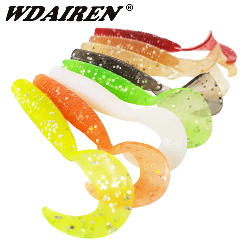 Anzuelos de pesca blandos, 60mm, 1,8g, cola espiral de gusano, olor a sal, cebo de silicona, carpa artificial, Lucio, aparejos de señuelo, 5 uds.