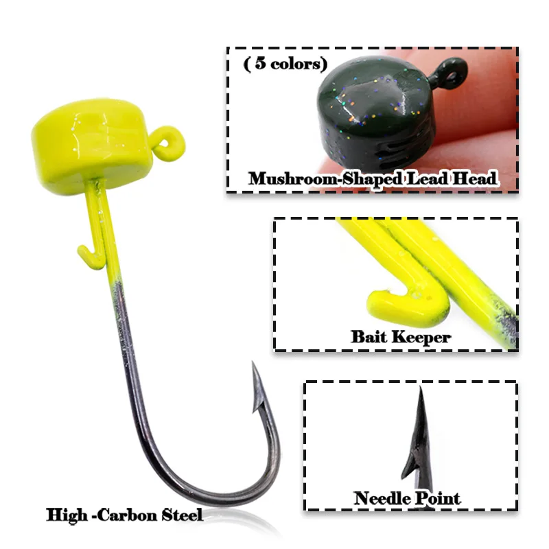 Anzuelos de pesca con cabeza de anzuelo Ned coloridos, 5 uds., anzuelos con cabeza de seta, aparejos de pesca afilados de 2,8g-7g para cebos blandos