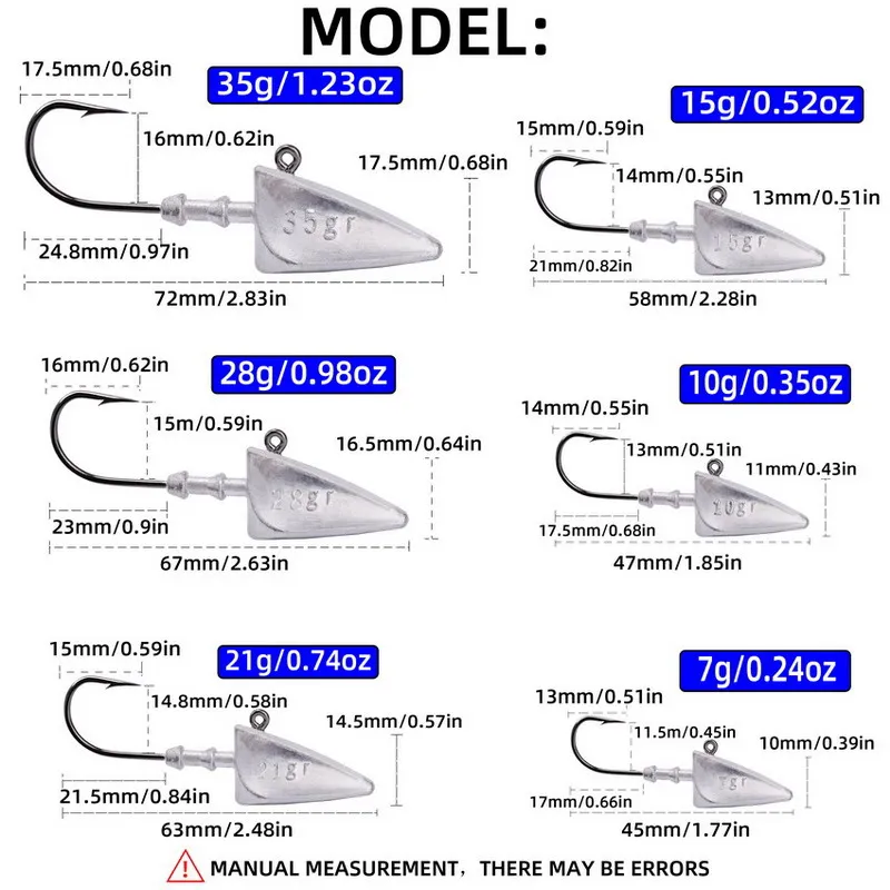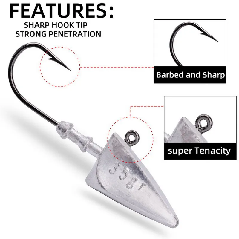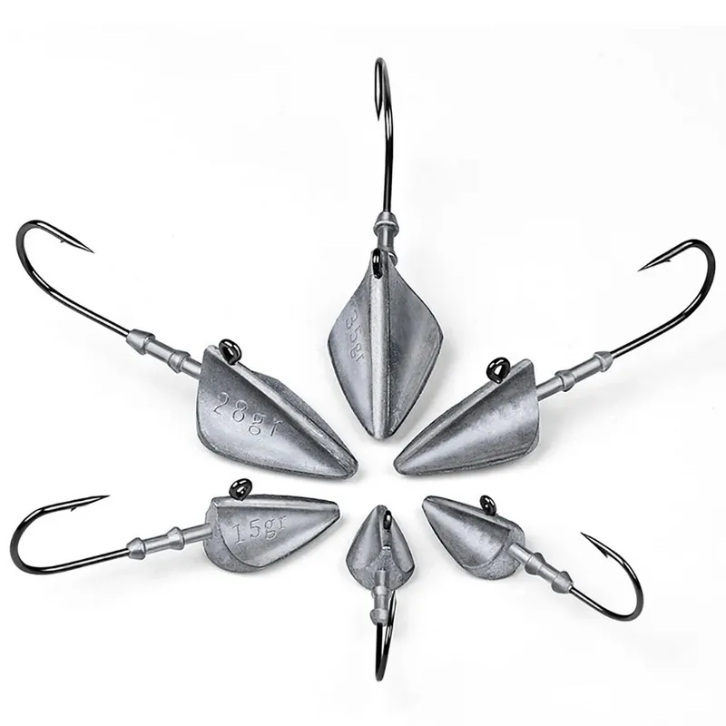 Anzuelos de pesca con cabeza de anzuelo triangular, 5 uds., con anzuelos afilados y cebo suave, 7g, 10g, 15g, 21g, 28g, anzuelos con cabeza de anzuelo de plomo Premium