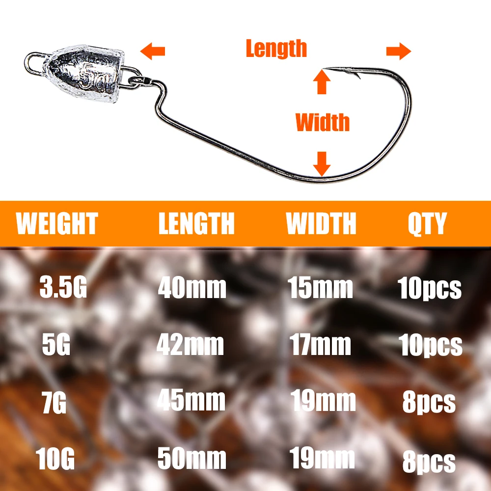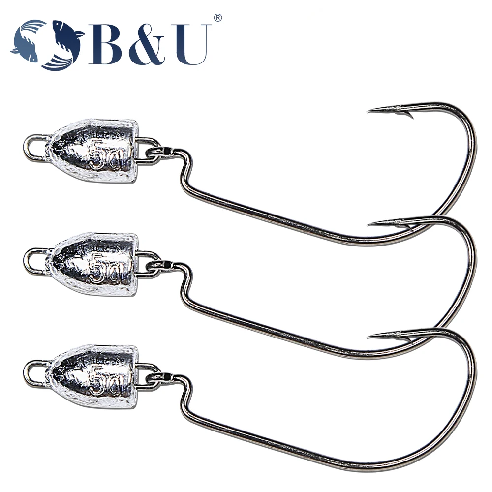 Anzuelos de pesca con cabeza de plomo B & U, 3,5g, 5g, 7g, 10g, anzuelos con cabeza de anzuelo oscilante de bala, anzuelos de gusano compensados sin malezas, accesorios de aparejos de Texas