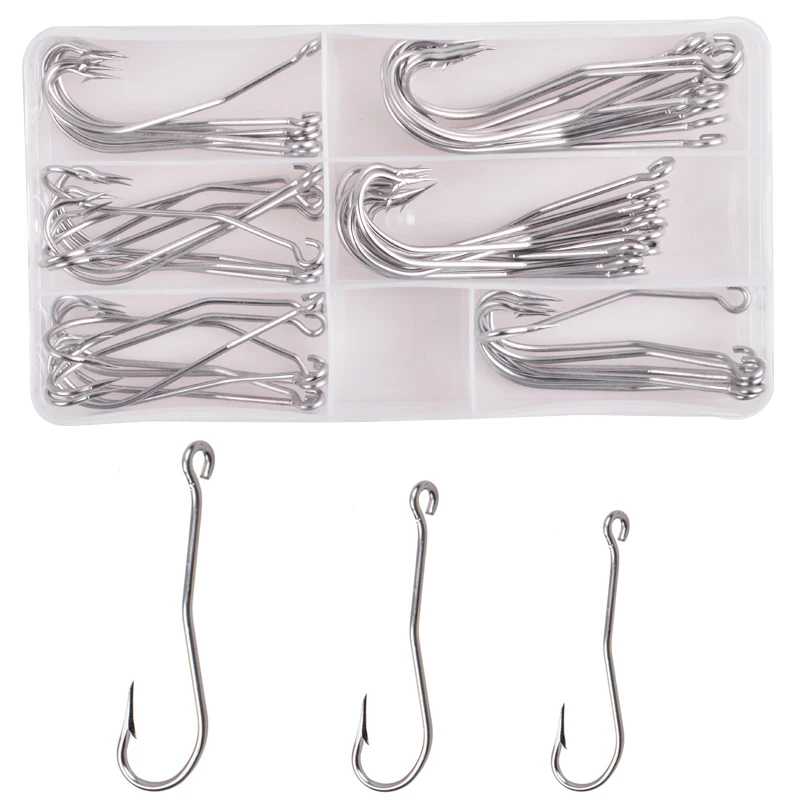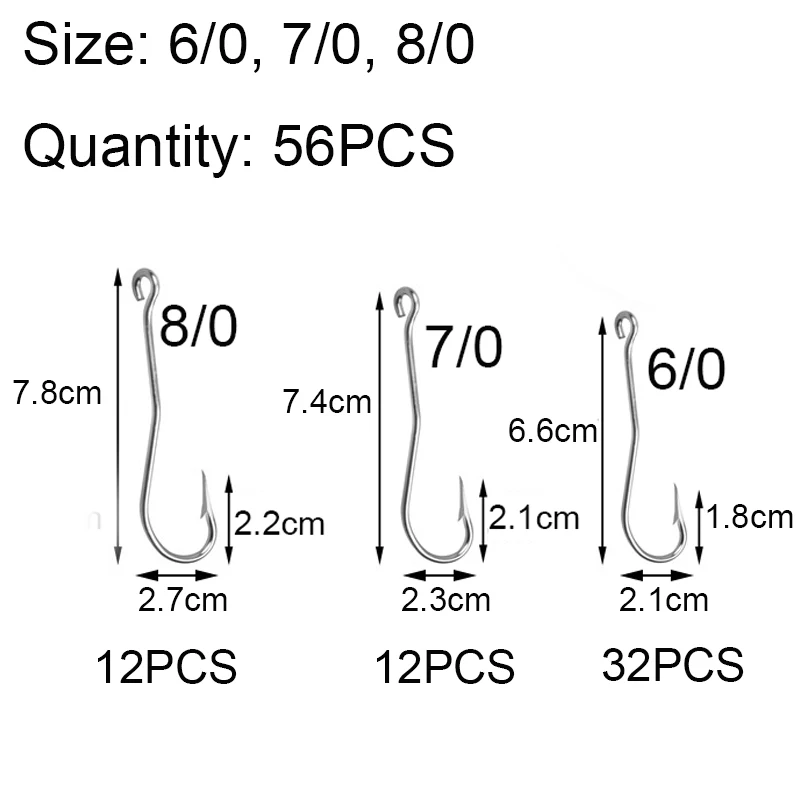 Anzuelos de pesca de caña larga de acero inoxidable, 56 unids/caja, anzuelos de compensación afilados, anzuelo de púas de Anguila de agua salada, anzuelos de plantilla