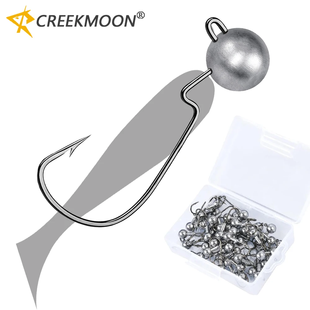 Anzuelos de pesca de caña larga, cabeza de plantilla grande expuesta, 3,5g, 5g, 7g, 10g, púas, cabezas de Jigging afiladas, gusanos blandos, 10 unids/lote por caja