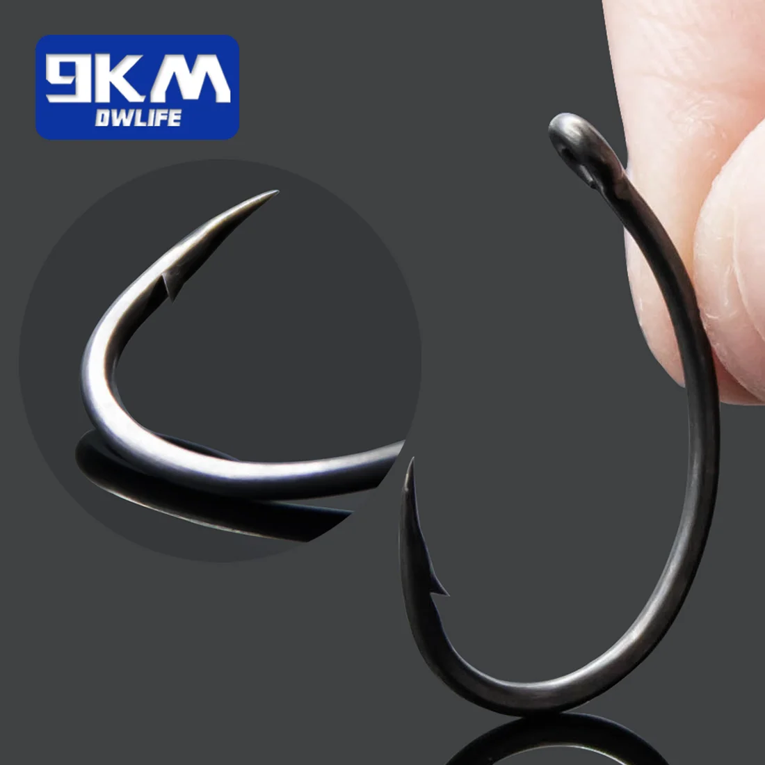 ALTA RESISTENCIA A LA TRACCIÓN: Los ganchos están hechos de acero de alto carbono, el material de acero de alta escala que ofrece una alta resistencia. La curva forjada le da al cuerpo de anzuelo una estructura reforzada.