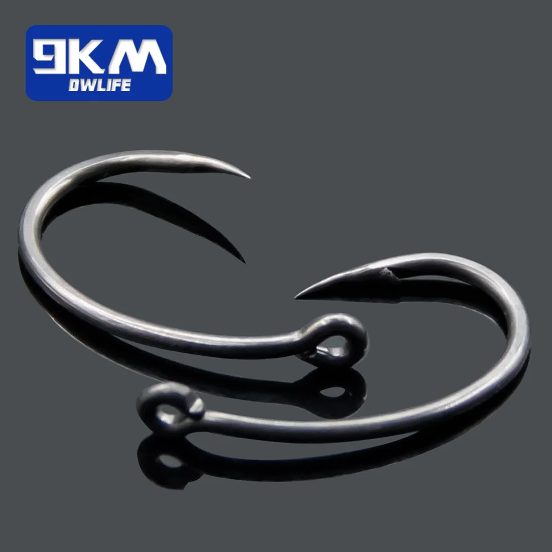 Forma de círculo, minimiza el daño: el vástago curvo junto con la curva de forma especial tira y se mantiene para formar una forma circular. La punta recta afilada químicamente con menos galvanoplastia, diseño de púas, hace que la punta sea más afilada y fácil de atrapar peces y disminuye la tasa de mortalidad, realmente buena para la captura y liberación.