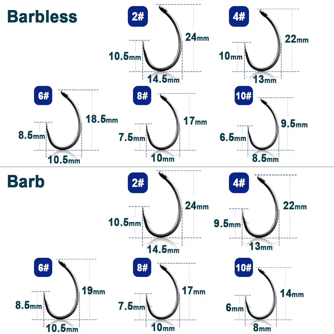 El paquete incluye: 5 tamaños diferentes (2 a 10 #) para adaptarse a sus múltiples aplicaciones de pesca que garantizan que el placer de la pesca continúe.